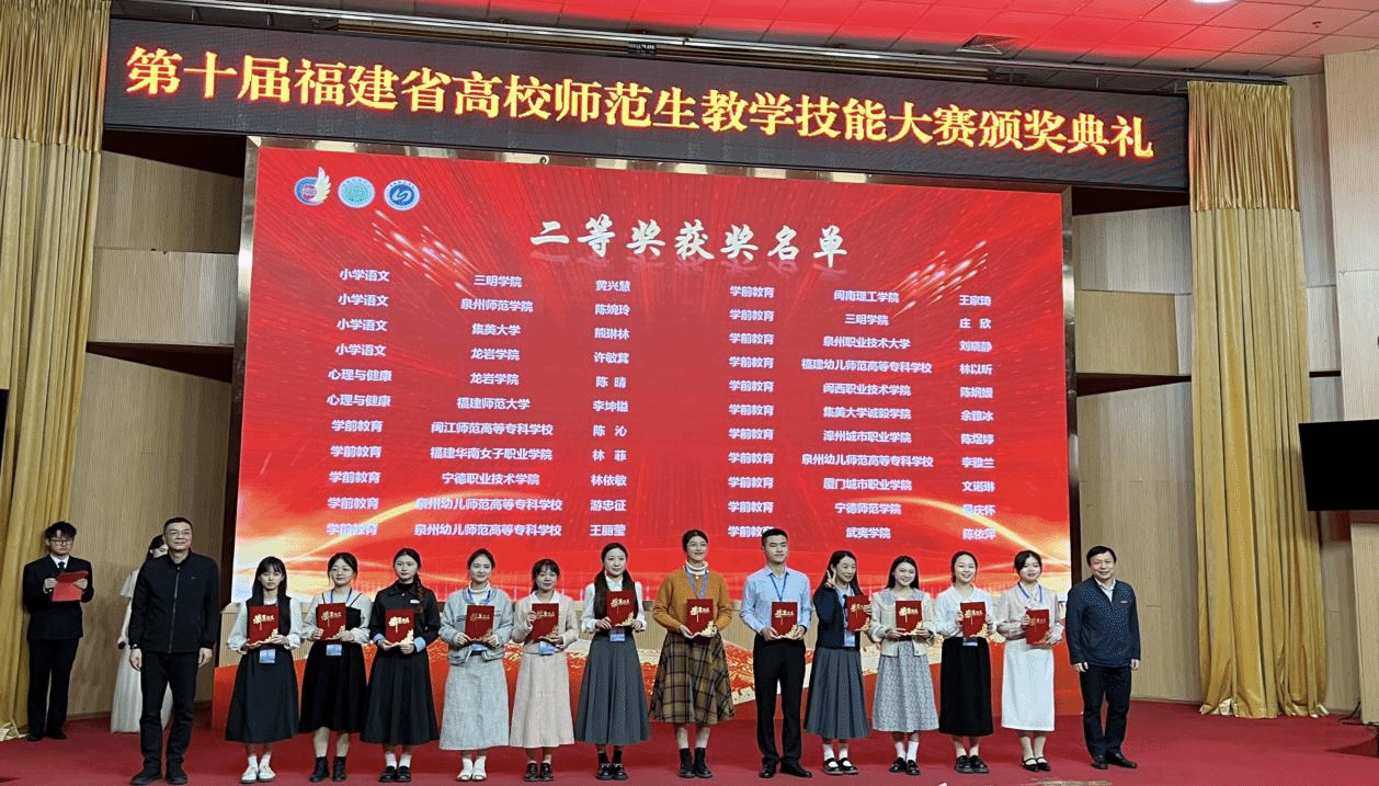 11月24日-26日,由省教育厅主办的第十届福建省高校师范生教学技能大赛在宁德师范学院举行,来自全省36所高校的230名师范生同场竞技。大赛设中学、小学和学前三个学段,其中学前教育组共48名选手参赛,我校教育与艺术学院陈娴媛同学荣获学前教育组二等奖(指导教师:罗瑜珍、罗笑芳)。参赛选手须在规定时间内完成教学设计、模拟课堂教学和专家问答三个环节任务。主要考察参赛者教学设计能力、驾驭课堂教学能力以及应用现代教育理念分析解决问题能力和教育教学基本技能。教育与艺术学院以赛事为抓手,以赛促学、以赛促教、以赛促改,夯实师范生实践教学技能,持续提高师范生培养质量。