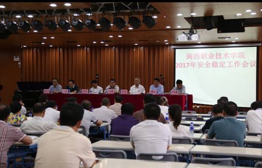 4月18日,我院在综合教学楼会议厅召开了2017年安全稳定工作会议,党委书记卢伟耀,院长来永宝,院领导吴新业、刘路永、卢兆梅、李贞鑫,院长助理李伟闽以及中层干部参加了会议。