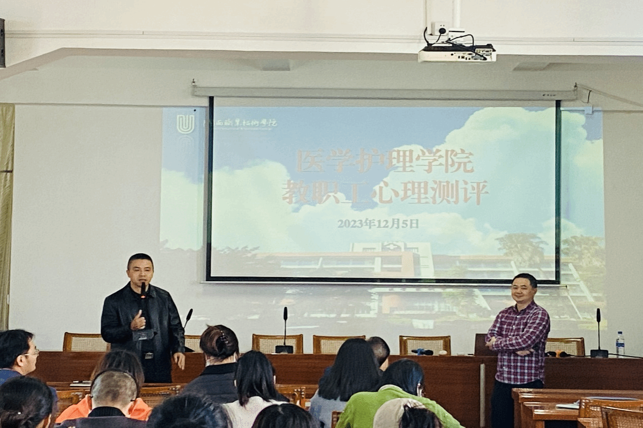 为深入贯彻主题教育,切实为教职工办实事,进一步了解教职工的心理状况,及时发现和解决问题,提高教职工工作积极性和生活幸福感,为教职工提供更好的工作保障和心理健康服务,2023年12月5日下午,学校工会邀请龙岩市第三医院心理咨询科副主任刘茂峰医生在医学护理学院开展首场教职工心理测评活动。