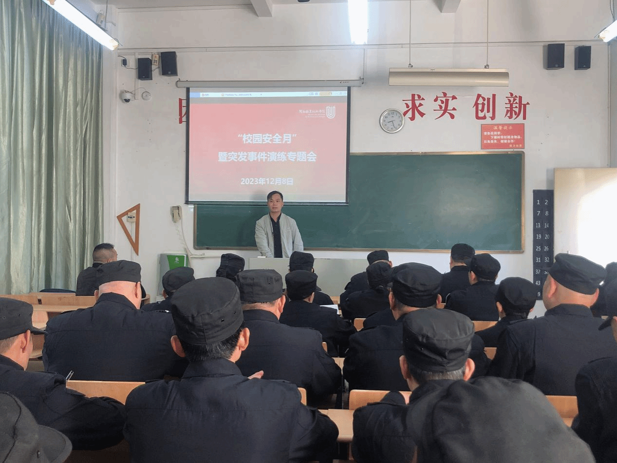 12月8日上午,我校在良才楼204室组织“校园安全月”专题会暨突发事件应急演练活动,安全保卫处,第三方安保公司、消防维保公司全体安保人员参加。