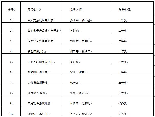 信息工程学院在由福建省教育厅、福建省人社厅、福建省财政厅、福建省农村农业厅、福建省卫健委、福建省总工会、共青团福建省委、福建省中华职业教育社主办的2024年福建省职业院校技能竞赛首批赛项中,共组织了10支队伍参赛,拟获一等奖1项、二等奖4项、三等奖3项、优秀奖2项。