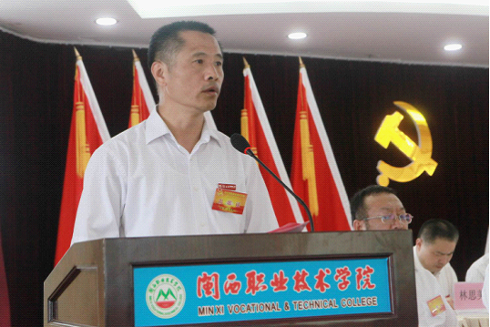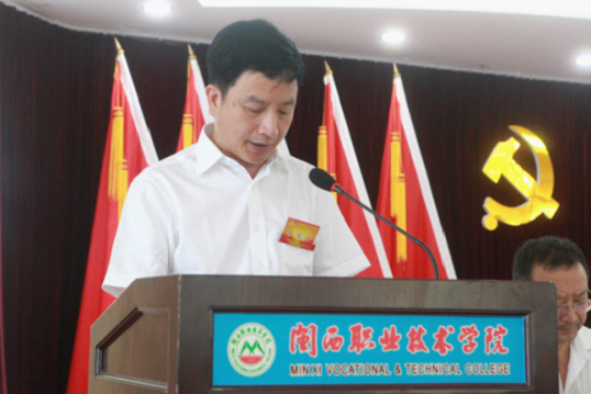 马春延代表学院党委作题为《继往开来、团结奋进,为建成海西一流、全国知名的高职名校而努力奋斗》的工作报告。