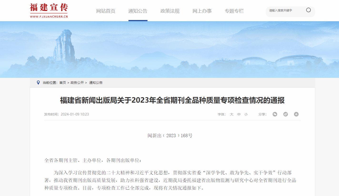 近日,从《福建省新闻出版局关于2023年全省期刊全品种质量专项检查情况的通报》(闽新出﹝2023﹞168号 )获悉,福建省新闻出版局委托福建省出版物监测与研究中心对全省期刊进行全品种质量专项检查,此次专项检查严格按照《出版管理条例》《期刊出版管理规定》《报纸期刊质量管理规定》等相关法规,对于行业标准中未涉及的问题,参考《现代汉语词典》(第7版)等权威工具书,期刊编校差错率小于或等于2.00‱的认定为合格;从整体检查样本174种来看,最高编校差错率为6.68‱,平均编校差错率为0.9‱。《无码人妻AV一二区二区三区学报》编校差错率为0.25‱,并列第38名,顺利通过检查。