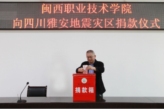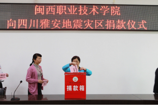 据悉,此次所捐款项学院将派人统一送龙岩市民政局,由龙岩市民政局转雅安灾区。