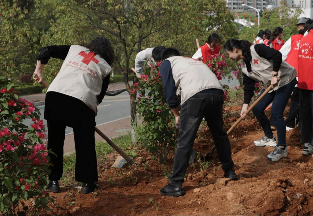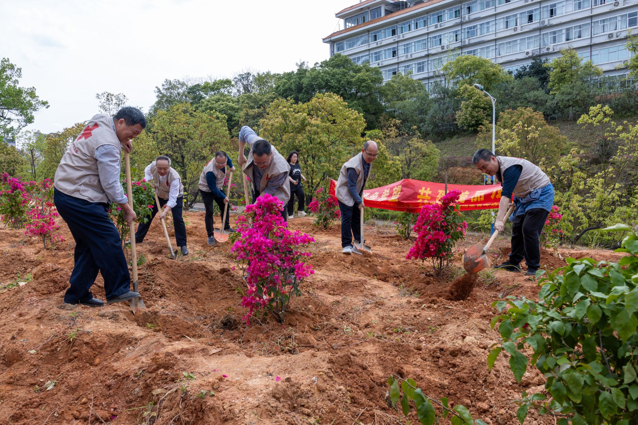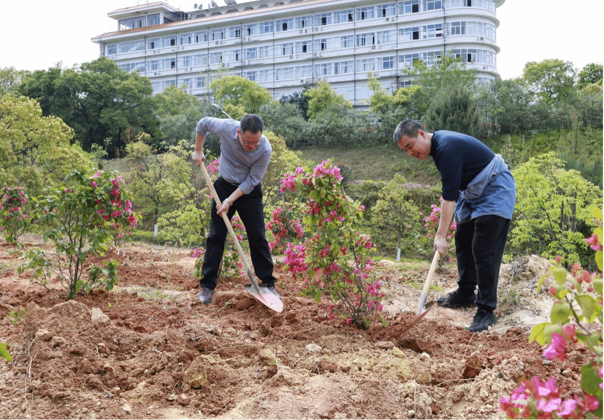 植树期间,校领导和师生们一起挥锹铲土、扶苗培土、围堰浇水……一棵棵三角梅“亭亭玉立”在闽大沃土上,师生忙碌的身影与新种下的树木构成了一幅人与自然和谐相处的美丽画卷。十年树木,百年树人,在校领导和师生们的共同努力下,128棵三角梅、2800余株月季有了全新的生命,为美丽的闽大校园增添了一道亮丽的风景。