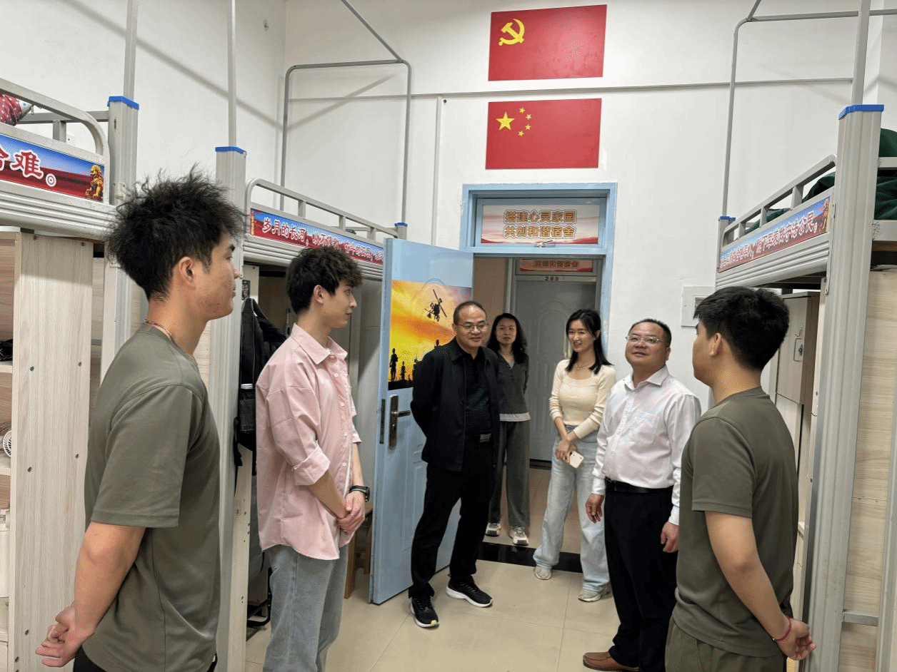 在考察中,卢兆梅副校长对退役军人宿舍的创建和管理情况给予高度评价。宿舍外张贴了宿舍成员在退役前的先进事迹,宿舍内部整洁有序,宿舍内悬挂着的党旗、国旗、部队格言等彰显着退役军人浓烈的爱国主义热情。各部门人员一边查看着环境卫生和物品陈列的情况,一边仔细询问了解了宿舍管理的具体措施和效果。在考察中,信息工程学院党委负责人向校领导介绍了学院在宿舍管理方面的举措和成果。他表示,信息工程学院高度重视退役军人模范宿舍的建设与管理,通过制定科学合理的管理制度,不断提升宿舍管理水平,通过典型标杆宿舍的打造带动其他宿舍的文明创建。