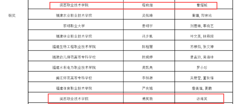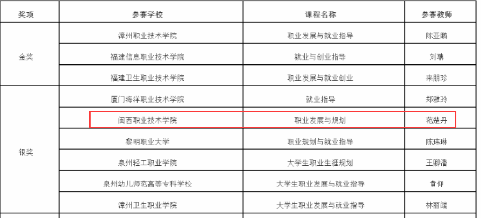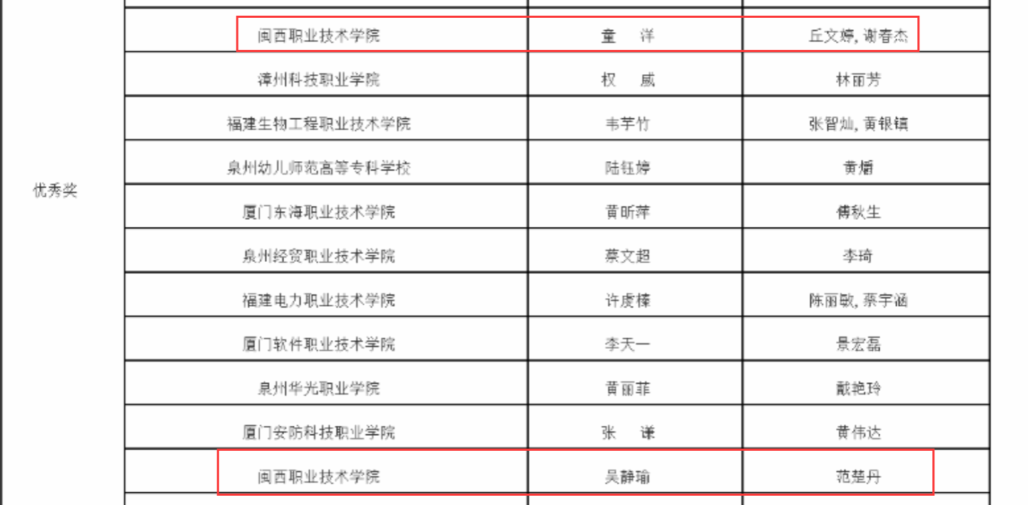 我校范楚丹老师荣获教学赛道职教组银奖;程晓煊同学(指导老师:曹熠城)、傅笑艳同学(指导老师:涂海英)两位同学作品获得就业赛职教组道铜奖;童洋同学(指导老师:丘文婷、谢春杰)、吴静瑜同学(指导老师:范楚丹)两位同学作品获得成长赛道职教组优秀奖。