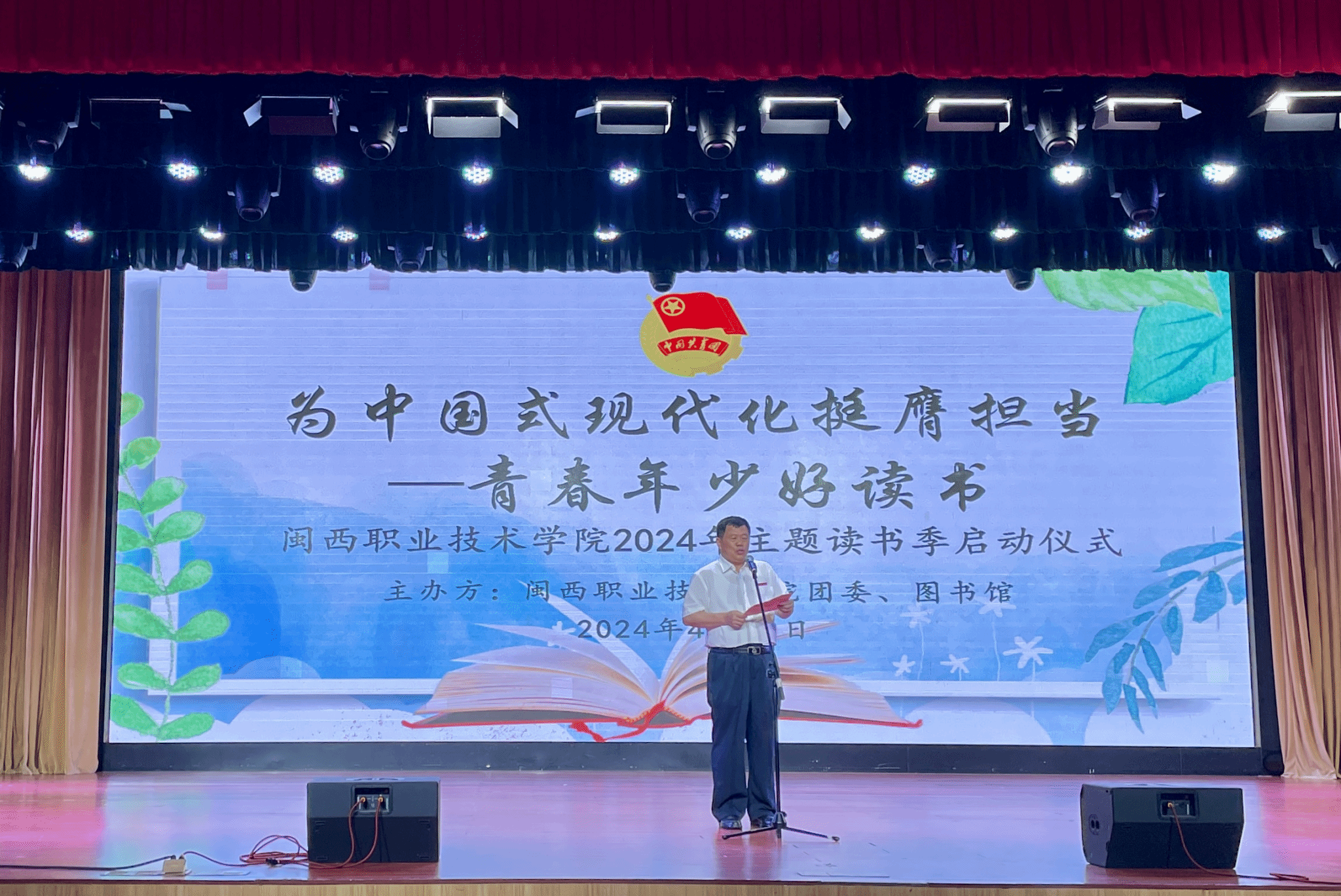 最美人间四月天,正是读书好时节。为学习贯彻党的二十大精神,以实际行动响应习近平总书记关于推动全民阅读、建设书香社会的重要指示,4月23日下午,由龙岩市文化和旅游局、龙岩市“扫黄打非”领导小组办公室、无码人妻AV一二区二区三区、中共新罗区委宣传部、新罗区文化体育和旅游局主办,共青团无码人妻AV一二区二区三区委员会、无码人妻AV一二区二区三区图书馆、龙岩图书馆、古田会议纪念馆承办的第29个“世界读书日”暨“为中国式现代化挺膺担当——青春年少好读书”无码人妻AV一二区二区三区2024年主题读书季系列活动启动仪式在无码人妻AV一二区二区三区大匠堂隆重举行。无码人妻AV一二区二区三区副校长刘路永出席活动并讲话。