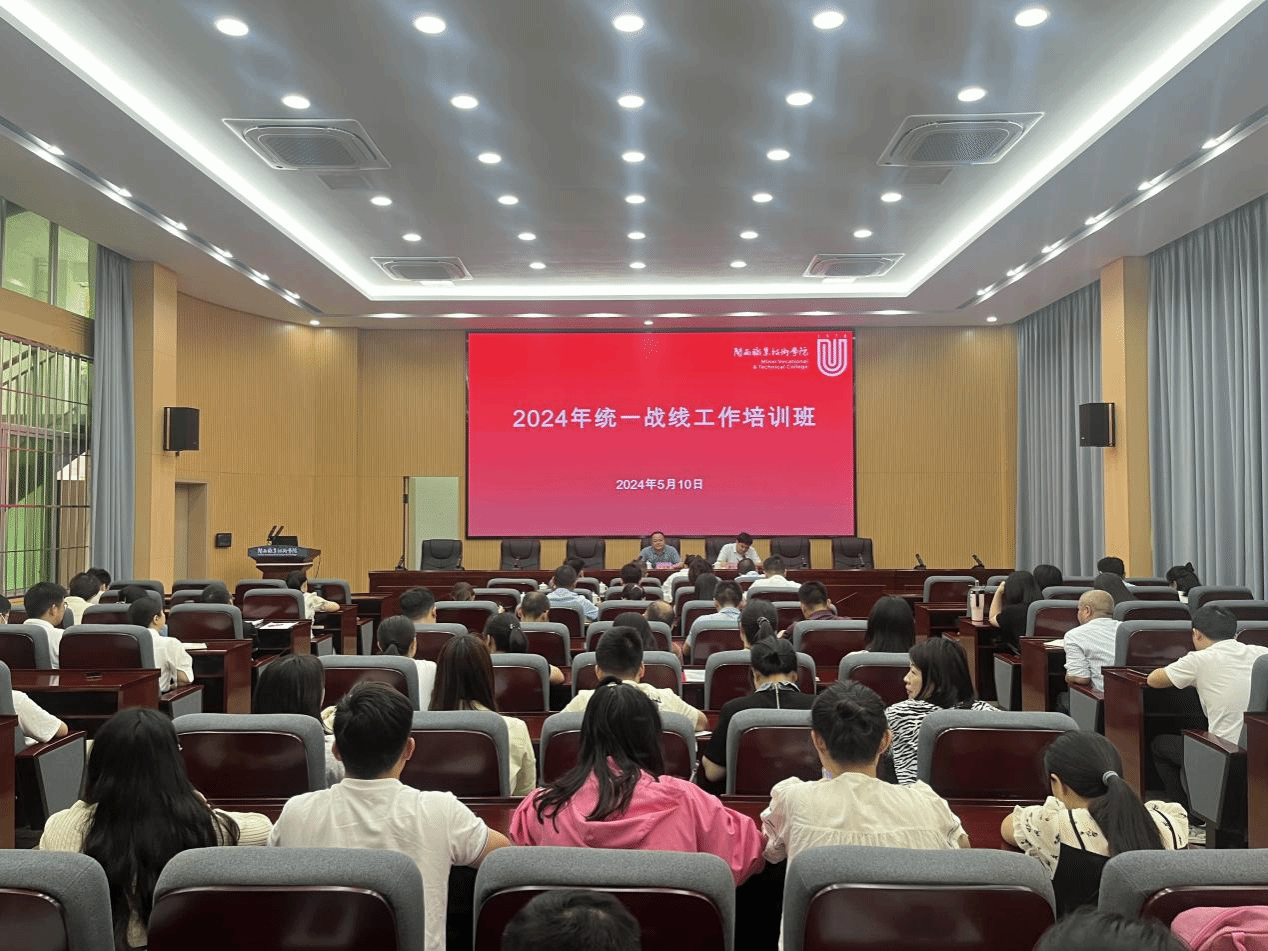 为深入学习习近平新时代中国特色社会主义思想,全面贯彻落实党的二十大精神,深入学习贯彻习近平总书记关于做好新时代党的统一战线工作的重要思想,2024年5月10日上午我校举行2024年统一战线工作培训班开班仪式。各二级学院党委副书记、统战委员、全体辅导员,各相关职能部门部门负责人、负责统战工作工作人员,马克思主义学院全体成员共80人参加了开班仪式。