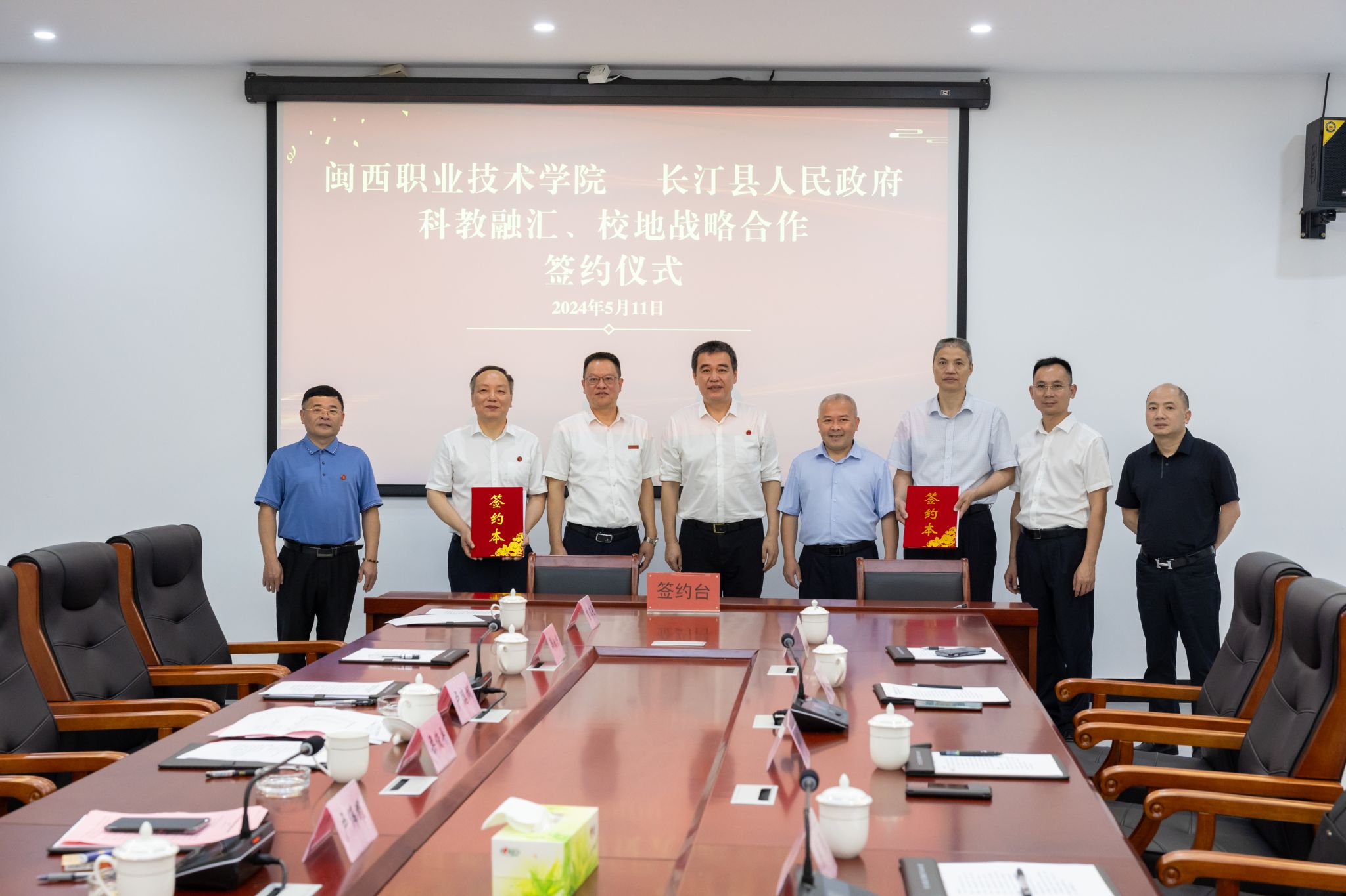 卢伟耀在致辞中表示,学校与长汀县在营商环境评价、职业教育体系贯通、职业技能等级认定、全国普通话测试,长汀三洲湿地公园景区提升、环境检测治理等多个领域开展了广泛深入的合作。此次校地科教融汇战略合作协议的签订和科教融汇示范中心的成立,标志着双方合作进入了一个全新的阶段,校地将充分发挥各自的优势和特色,共同推动科技创新与产业发展的深度融合,探索“政产学研用”有机结合新模式。同时校地深化产教融合协同育人,实现教育链、人才链与产业链、创新链的有机衔接,通过教育和产业的紧密联合,有效地促进科技创新,培养高素质人才,推动经济社会持续健康发展,对加快推进长汀县医疗器械等产业发展具有重大意义。我校以此为契机,进一步加强自身建设和发展,不断提升教育教学质量和科研创新能力,为培养更多高素质技术技能人才、服务地方经济社会发展作出更大的贡献。