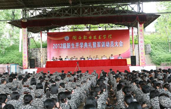 副院长吴新业作新生军训动员讲话。他说,军训是对大学生加强国防教育、提高身体素质、培养纪律观念的重要举措,是学院教学工作的重要组成部分。他要求,2012级新生充分认识军训意义,增强搞好军训的自觉性;振奋精神状态,接受军训锤炼,出色完成训练任务;聚精会神搞好训练,严格遵守校规校纪。