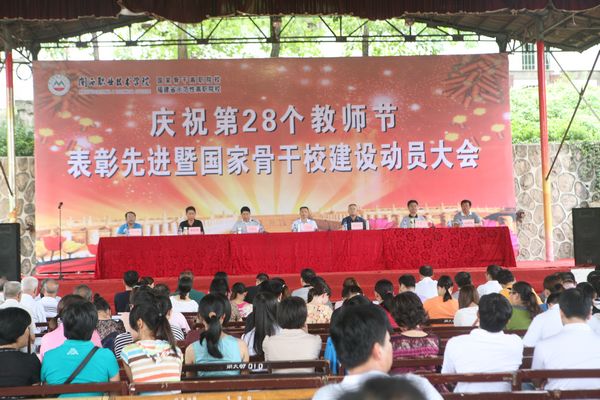 9月10日下午,闽西职业技术学院在槟龙球场隆重举行庆祝第28个教师节表彰先进暨国家骨干校建设动员大会。院领导马春延、来永宝、吴新业、张斯为、黄村明,院长助理刘路永、李伟闽及全体教职员工、离退休老同志参加大会。会议由张斯为副院长主持。