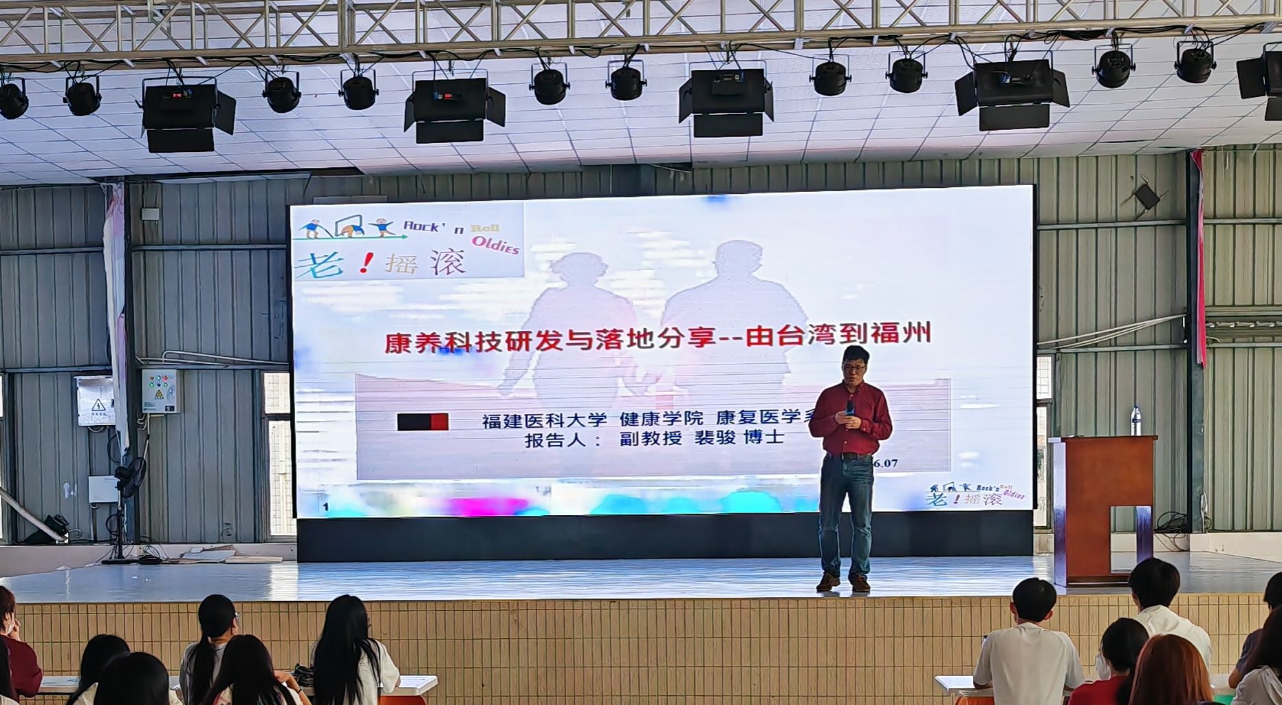 裴骏博士从“什么是科技养老”“老摇滚跨领域团队的工作领域”入手,讲述了为何高龄长辈健康促进动机低落、如何预防高龄长辈两个最大健康杀手 ——跌倒与痴呆(失智)、如何以系统化方法创新服务设计等内容,介绍了如何开展社区健康促进活动及其设备与人员配置、如何融合两岸中国人康养技术与市场挥洒出美丽活跃的夕阳红等内容。讲座从“老摇滚”跨领域团队的工作领域的游戏设计入手,讲述体感游戏如何应用于康复、健康,观点思路独到,让人眼前一亮,得到了医学护理学院师生的欢迎和赞同。