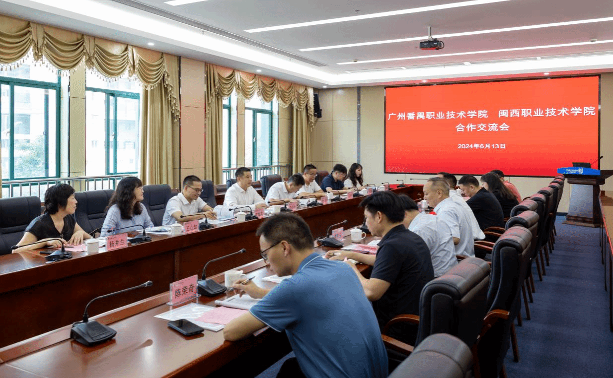 仲夏日中时,闽西万象新。6月13日上午,广州番禺职业技术学院与无码人妻AV一二区二区三区合作交流会在我校岩声楼二楼会议室召开。广州番禺职业技术学院党委委员、副校长李绍中,党委委员、组织部部长郑亮,党委委员、宣传部部长曾海宾及相关学院、部门领导,我校党委副书记、校长梁俊平,党委委员、副校长张源峰及对口学院、部门领导参加交流会。会议由我校党委委员、副校长张源峰主持。