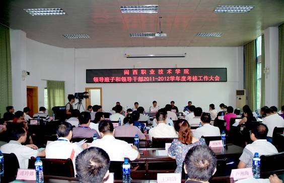 6月20日下午,我院领导班子和领导干部2011—2012学年度考核工作大会在行政楼二楼会议室召开,以市委常委、宣传部部长邱荣为组长的市委干部考核组一行11人出席会议。院领导马春延、来永宝、吴新业、张斯为、黄村明,院长助理刘路永、李伟闽及中层领导干部、离退休党组织负责人、学院民主党派负责人、市级以上“二代表一委员”、院学生会主席等近90人参加了会议。会议由院党委书记马春延主持。