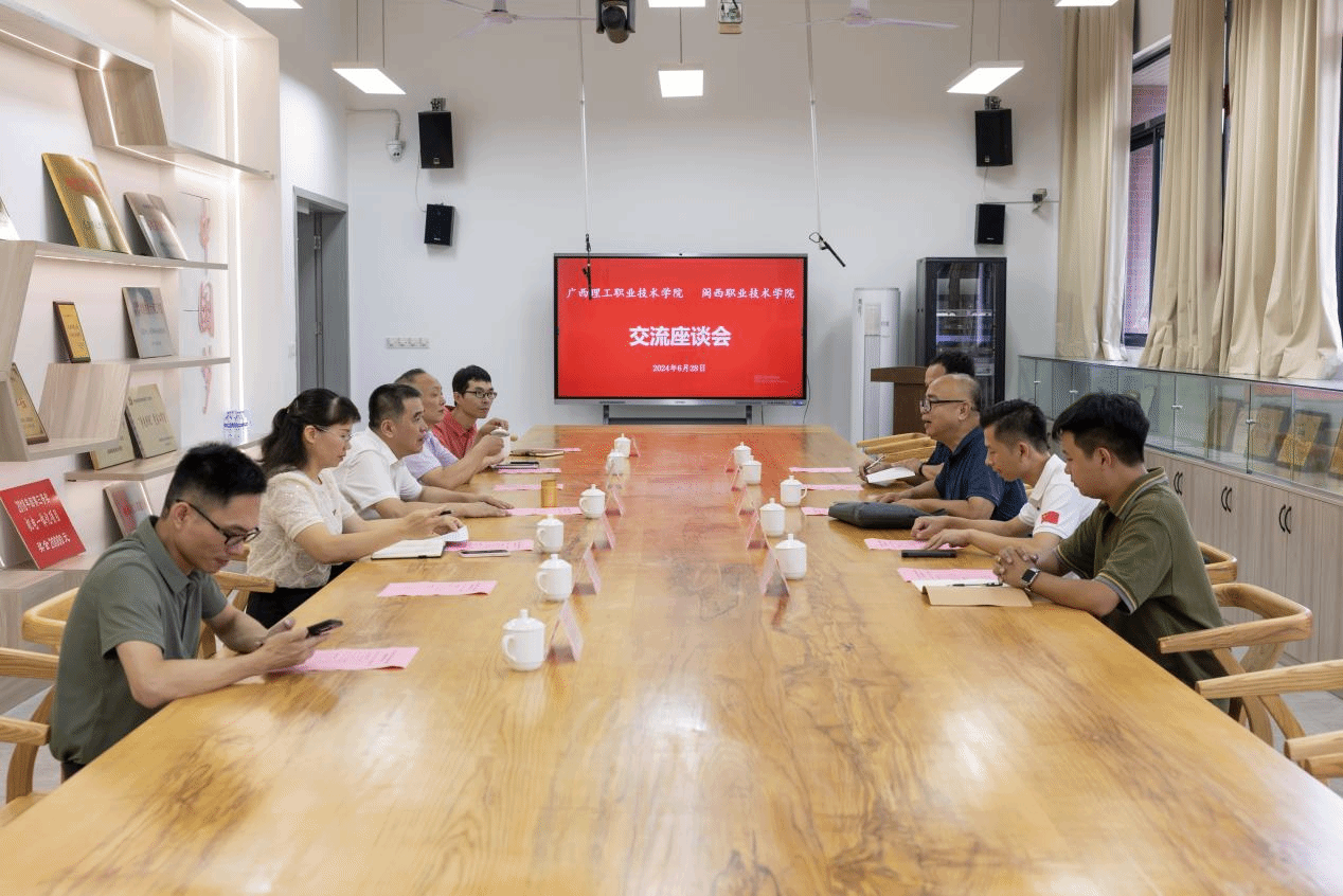 6月28日上午,广西理工职业技术学院书记农荣、副校长韩祖丽一行5人到我校调研交流。我校党委书记卢伟耀、副校长张源峰、教务处、科研处、财经商贸学院、智能制造学院等相关负责人陪同参观访问。