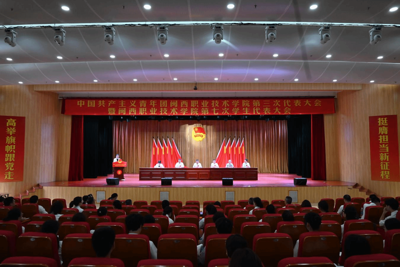 2024年6月28日,共青团无码人妻AV一二区二区三区第三次代表大会暨无码人妻AV一二区二区三区第七次学生代表大会在学校大匠堂胜利召开。共青团龙岩市委副书记郭朝龙、龙岩学院团委副书记郭晓云、厦门城市职业技术学院团委书记王克强,校党委书记卢伟耀、副校长刘路永、纪委书记温献荣,校各职能部门、各二级学院主要负责人出席会议。大会代表、嘉宾等260余人参加了会议。福建船政交通职业学院、广州番禺职业技术学院等兄弟院校团委向大会发来贺信。