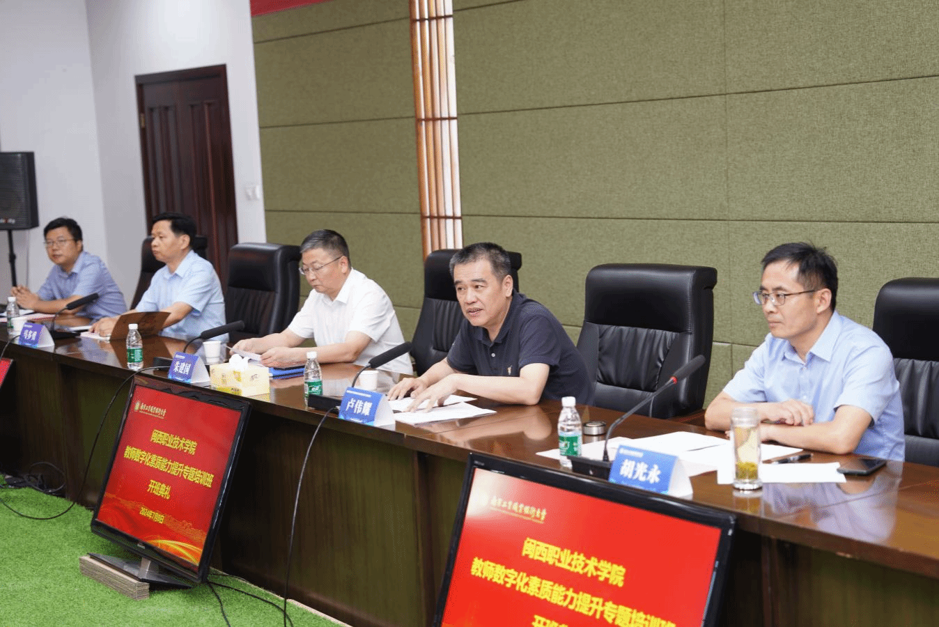 开班仪式上,卢伟耀书记对承办院校——南京工业职业技术大学表示衷心的感谢。他指出,教育数字化是我国开辟教育发展新赛道和塑造教育发展新优势的重要突破口,举办教师数字化素质能力提升专题培训班,旨在实施数字化赋能教师发展行动,提升教职工数字素养与技能。他强调,参训学员要认识到位、端正态度,静下心来学习,了解世界数字教育发展趋势,建立数字化思维方式,掌握数字化教育方法;培训中要深入感受、深入体验、深入思考我国职业教育的头部院校——南京工业职业技术大学的先进办学理念和教育教学创新机制;要保持闽西红土地高职院校教师的优良师风、学风,勤学好问、遵守纪律、艰苦朴素;要把培训所学所见进行转化和应用,将培训成果全面运用到教育教学中,在熟练运用数字工具进行教学设计、课堂互动、数据分析,探索数字化教学方法培养学生数字素养和数字能力中发挥标杆和表率作用,塑造我校高质量发展新动能;各教学单位要建立教师数字化素养精细化评价机制,把教师数字化能力列入教师职业画像、评价考核的重要指标。