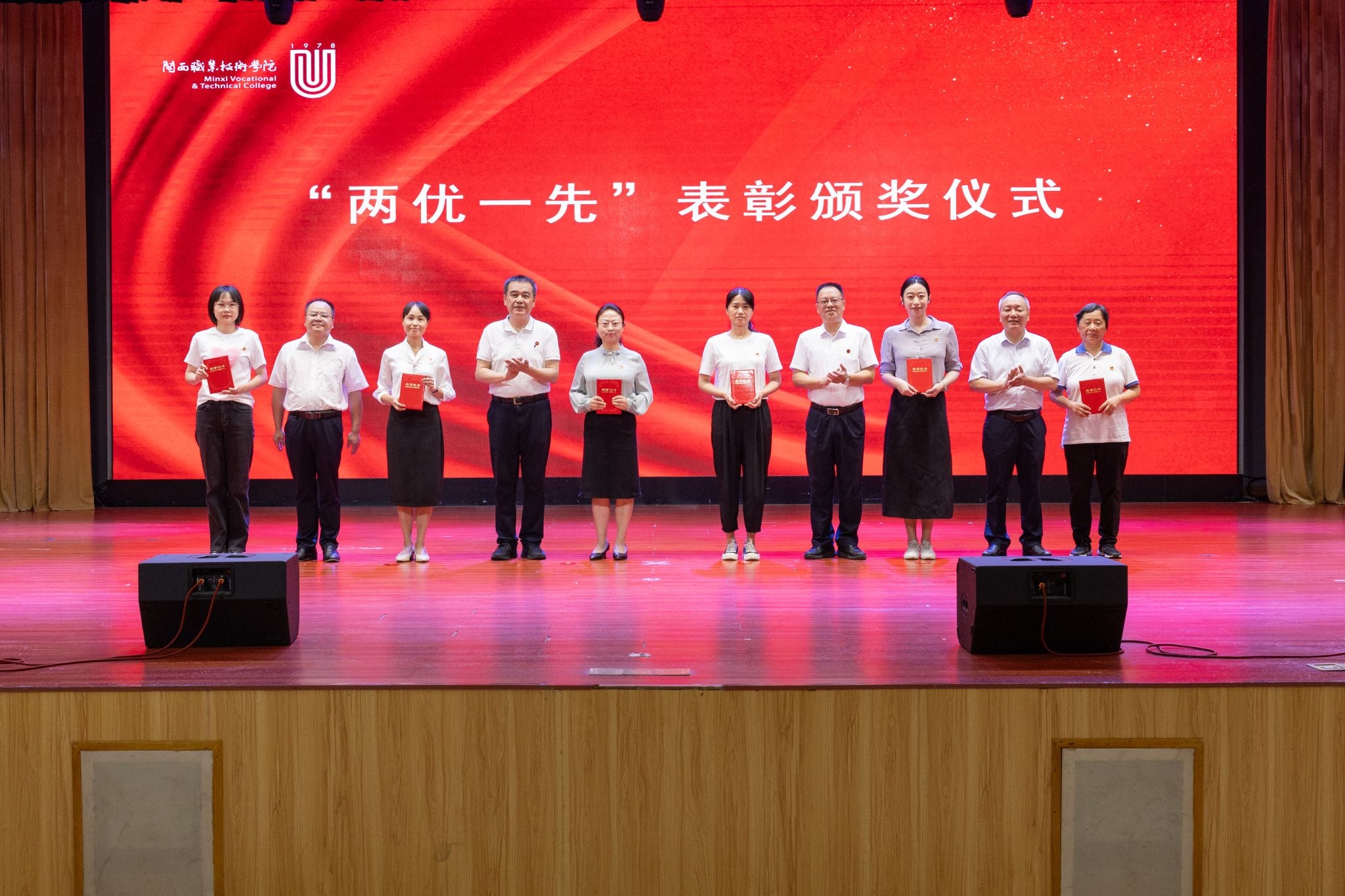 大会第一阶段为“两优一先”表彰大会。由张源峰副校长宣读“光荣在党50年”党员名单,宣读我校受中共龙岩市委教育工委表彰的2022-2024年度全市教育系统优秀共产党员、优秀党务工作者、先进基层党组织和校党委表彰的2023年度先进基层党组织、优秀共产党员和优秀党务工作者。在家校领导为受到我校表彰的先进基层党组织、优秀共产党员、优秀党务工作者代表颁奖。大会还集中观看龙岩市“两优一先”先进事迹专题片。