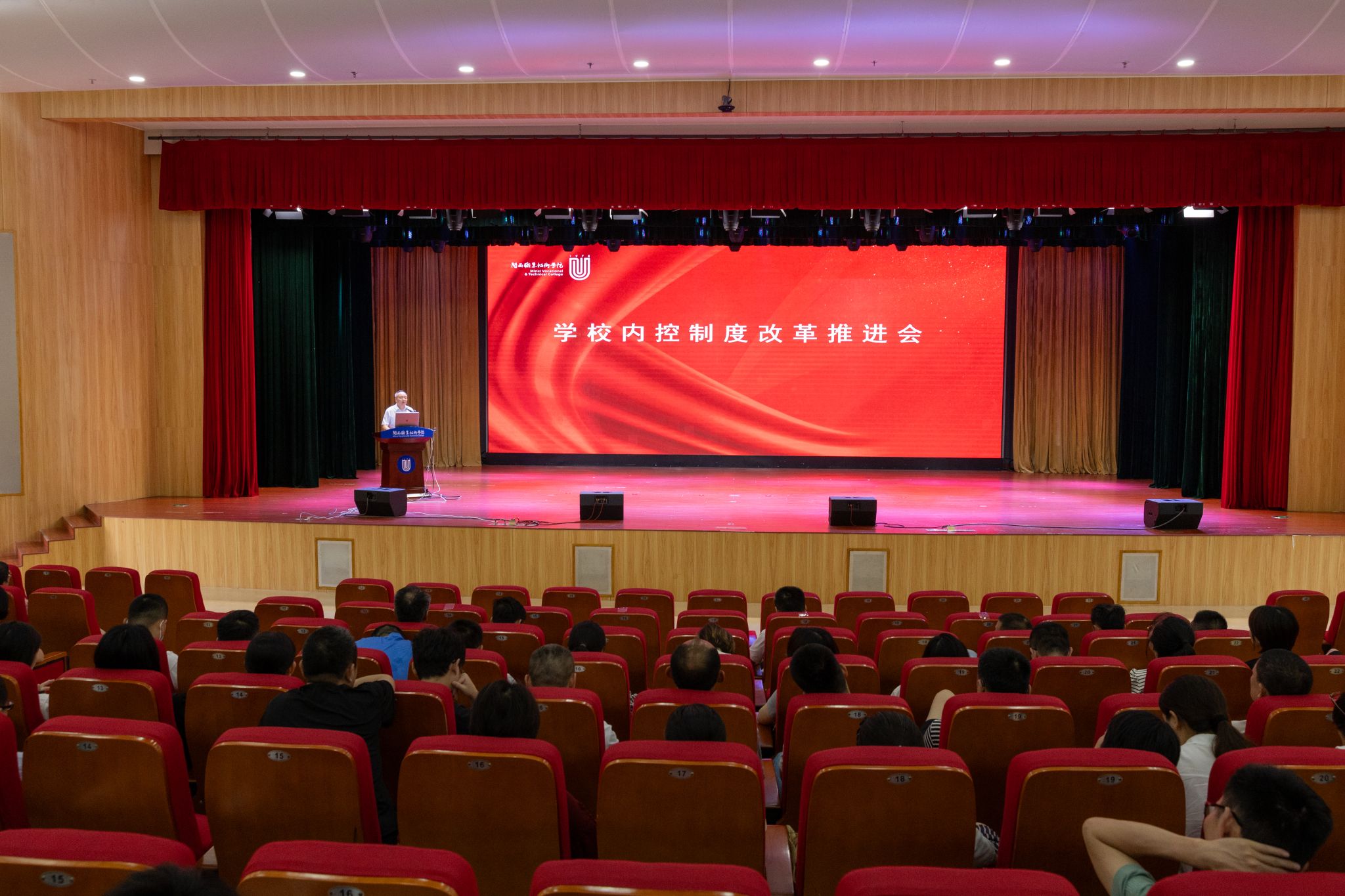 第三阶段为学校内控制度推进会,由张源峰副校长作实施方案说明、解读。卢伟耀书记指出学校当前面临的严峻形势,分析了解决思路,希望全体教职工增强危机意识,直面困难,上下同心,下狠心更努力,为闽大创造更加美好的明天。