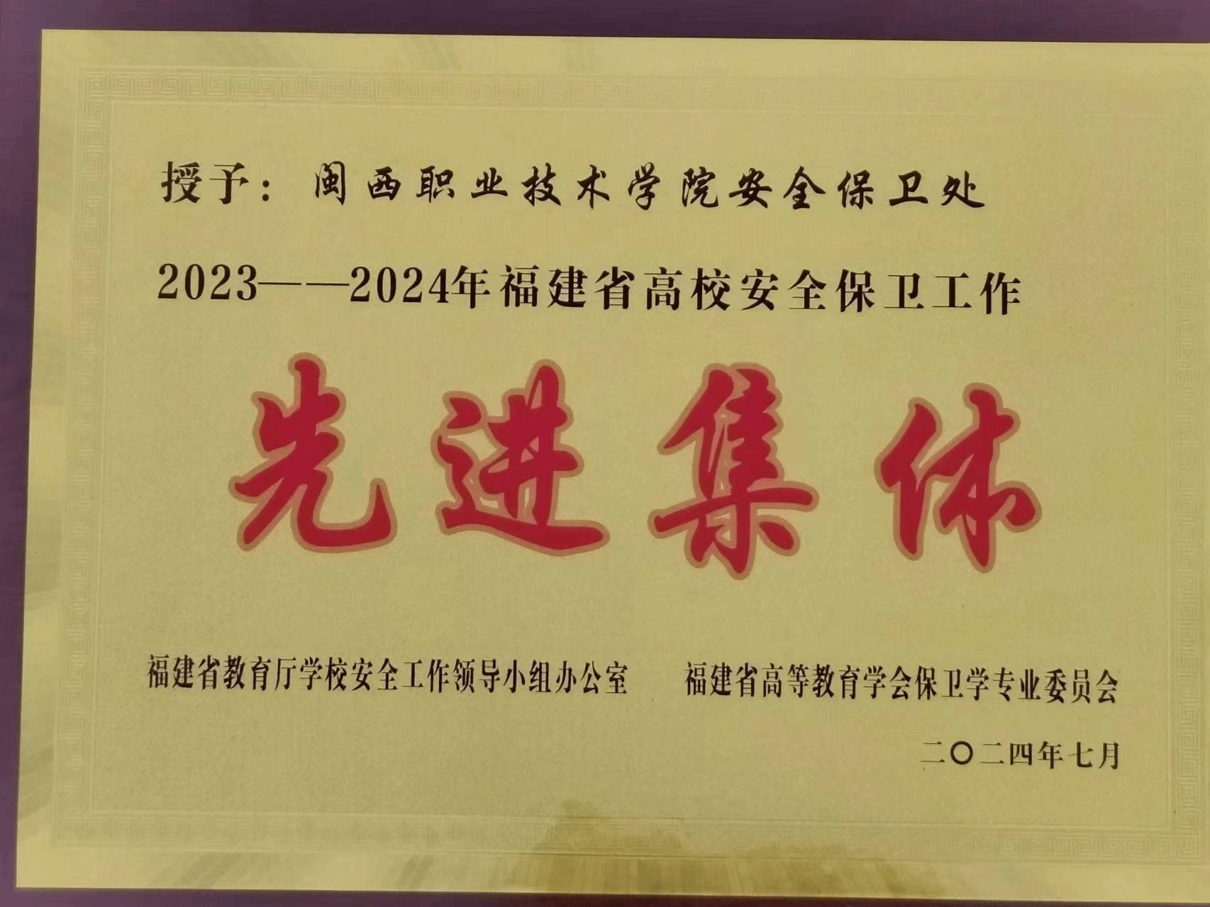 近日,从省教育厅学校安全领导小组办公室获悉,我校安全保卫处被授予2023-2024年福建省高校安全保卫工作“先进集体”。