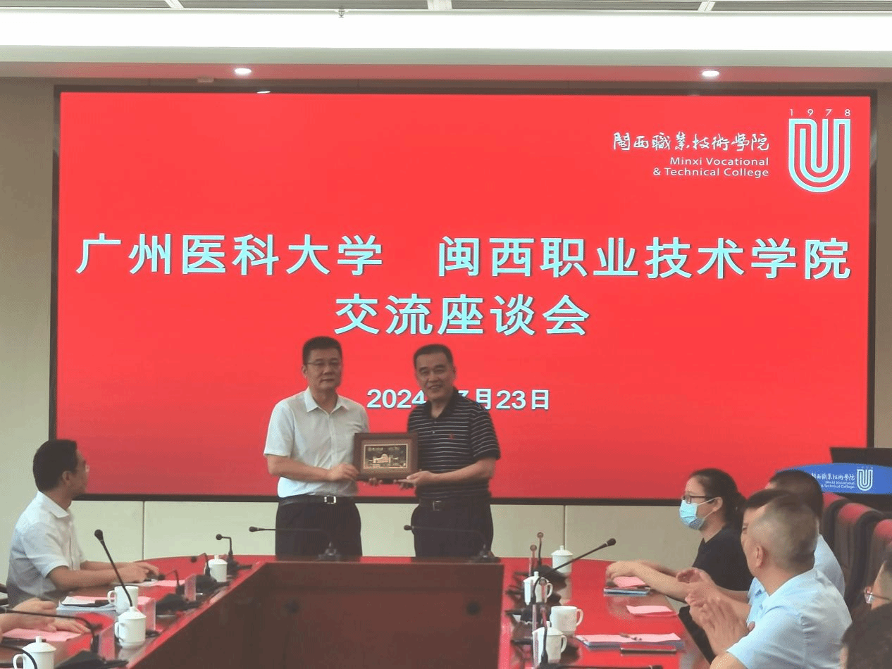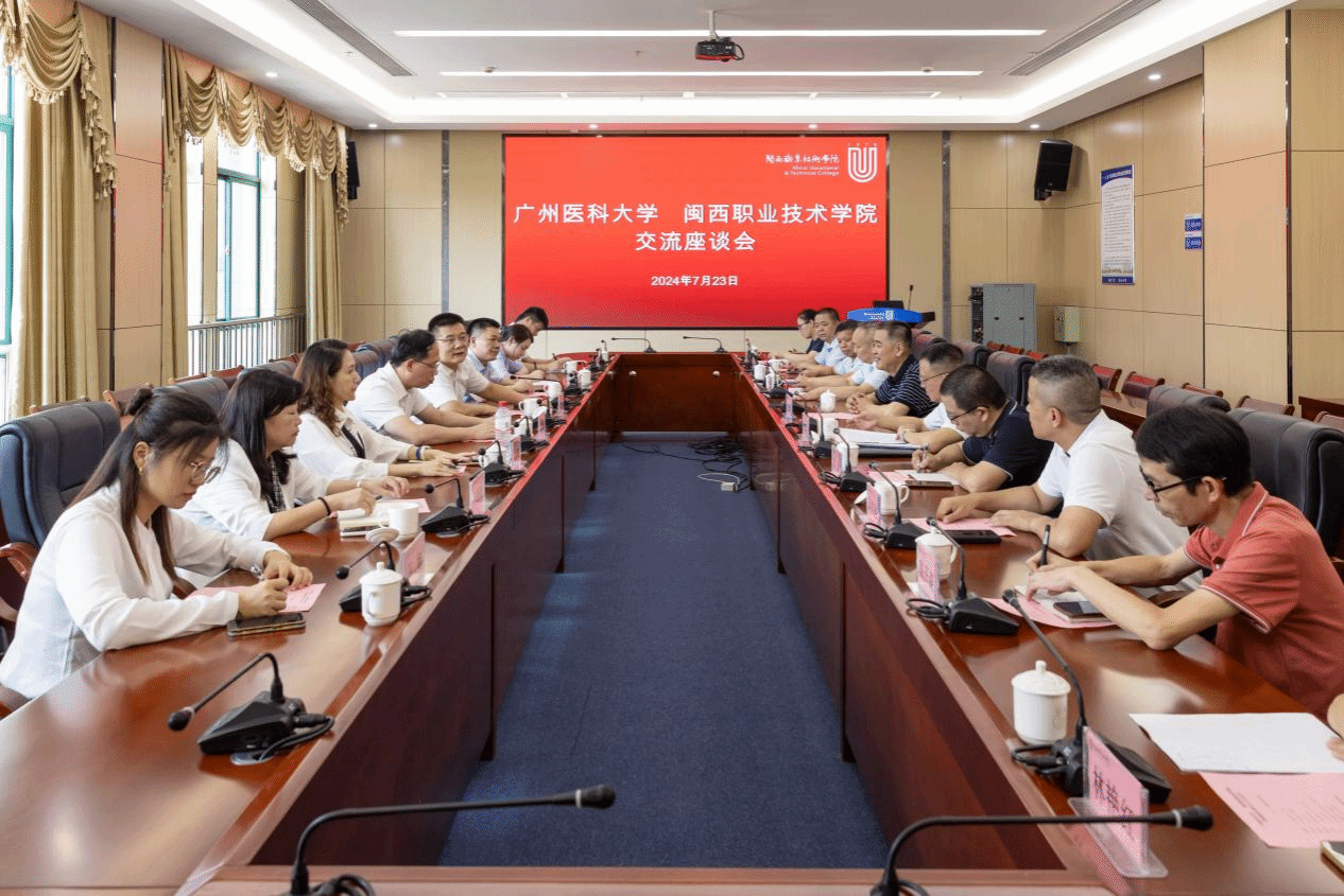 广龙一家亲,共谱红医情。7月23日上午,共建校广州医科大学党委副书记、校长赵醒村率队赴我校指导交流。广州医科大学党委常委、副校长付晓东及相关部门、学院领导,我校校领导卢伟耀、梁俊平、张源峰及对口部门、学院领导陪同考察或参加座谈会。