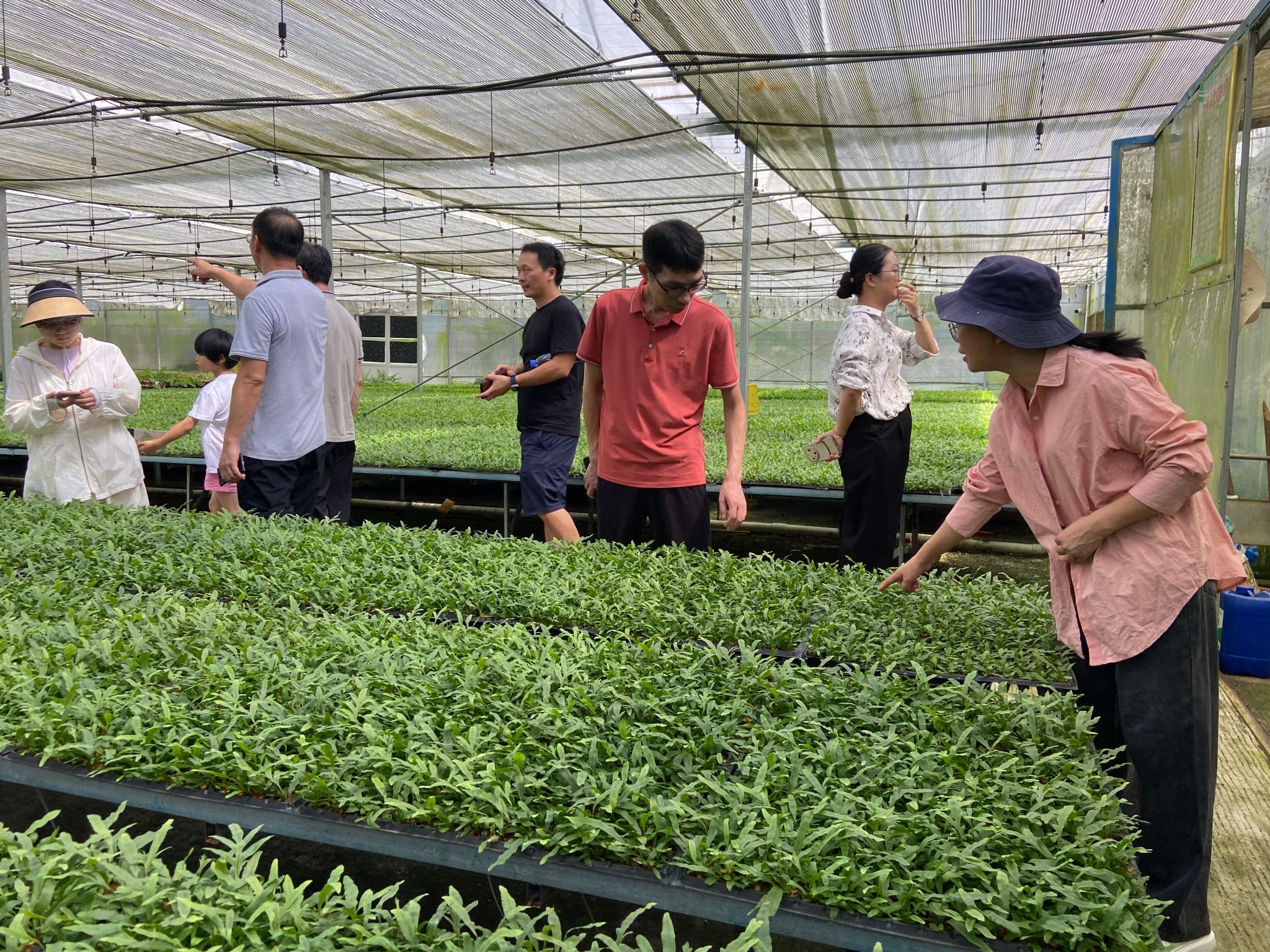 教师团队查看林场杉木林下经济药用植物骨碎补、金毛狗蕨、鸡血藤、重楼、土人参、多花黄精、黄花远志、麦冬等药用植物的长势情况,分析了林下的光照、温度、湿度、土壤等环境条件,并对药用植物的种植密度,肥料的施用、栽培管理等做了指导。在苗圃地,查看了太空育种的杉木苗、药用蕨类植物骨碎补、金毛狗蕨、米老排、闽楠等苗木的长势和病虫害情况,针对杉木苗的根腐病、叶部害虫、骨碎补的叶斑病、米老排的叶斑病等病虫害发生的原因进行了分析,并对林场人员进行了苗木栽培管理和苗木不同病虫害的预防和防治的指导,真正实现技术到田,服务到人,切实解决了林场急需解决的技术问题。