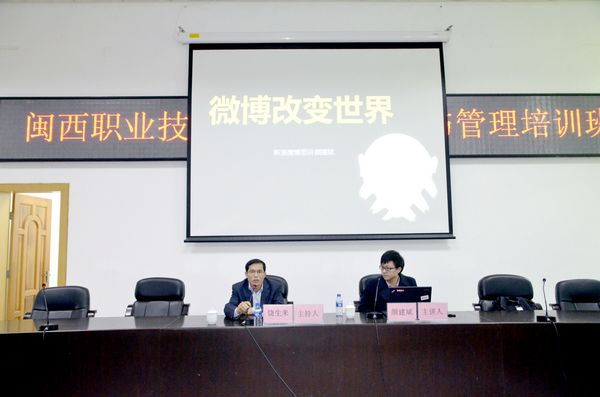 培训班上,福建新浪渠道经理颜建斌受邀作了题为“微博改变世界”的讲座,向参训学员介绍了微博的特征、功能、使用与管理等相关知识,并进行了互动交流。