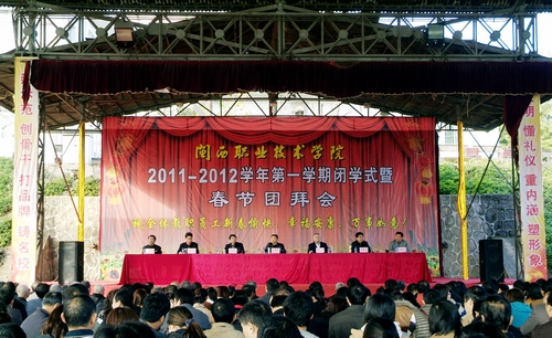 1月11日上午,我院举行闭学式暨2012年春节团拜会。党委书记马春延,院长来永宝,副院长吴新业、张斯为、黄村明,院长助理刘路永、李伟闽出席并在主席台就座,学院全体教职工、离退休老同志参加会议。会议由张斯为副院长主持。