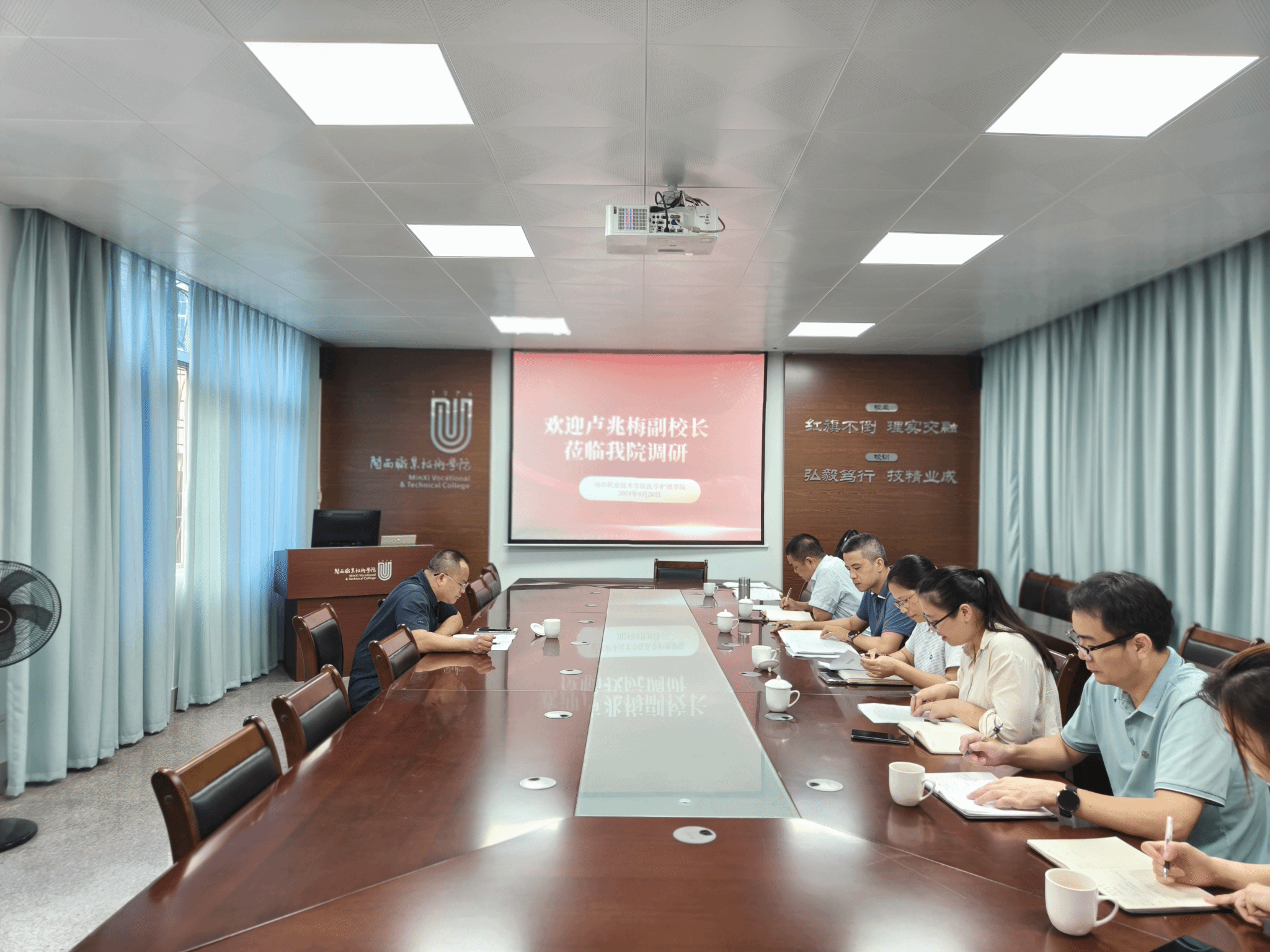 近日,副校长卢兆梅同志到医学护理学院开展调研。院领导班子成员,教学、行政、党务秘书参加了会议。
