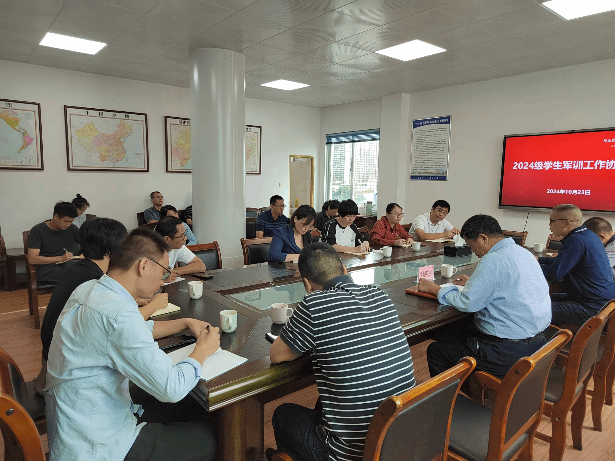 10月23日上午,我校在协成楼六楼第三会议室召开2024级学生军训工作协调会。校领导刘路永,党政办公室、宣传部、教务处、学生工作处、财务处、后勤国资处、安全保卫处、团委等部门负责人和各二级学院党委副书记,校人民武装部全体人员参加了会议。