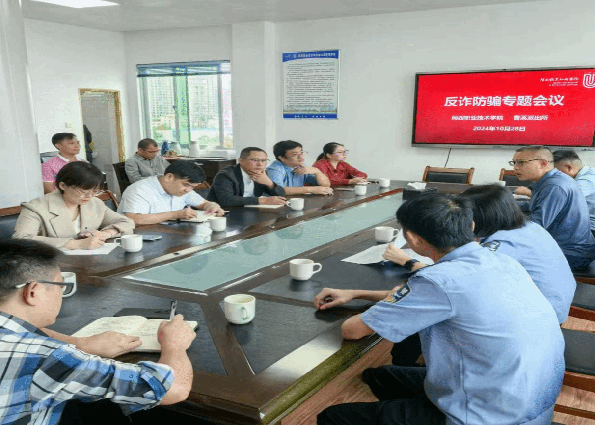 10 月 28 日上午,我校召开反诈防骗专题会议。曹溪派出所民警,宣传统战部、学生工作处、团委、马克思主义学院负责人,各二级学院分管学生工作负责人,安全保卫处负责人及相关工作人员参加会议。
