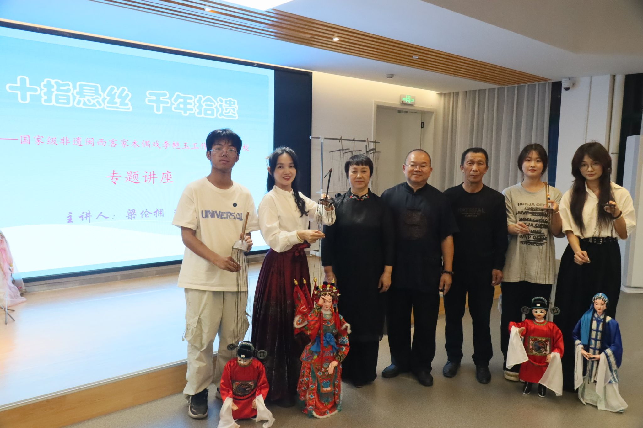 本次讲座特别邀请了国家级非遗项目“闽西客家木偶戏”的省级传承人李艳玉老师以及龙岩市民间文艺家协会会长、木偶世家出身的梁伦拥老师作为主讲嘉宾。两位专家结合自身丰富的经验和深厚的专业知识,向师生们详细介绍了闽西木偶戏的历史渊源及其随时代变迁所经历的发展过程。
