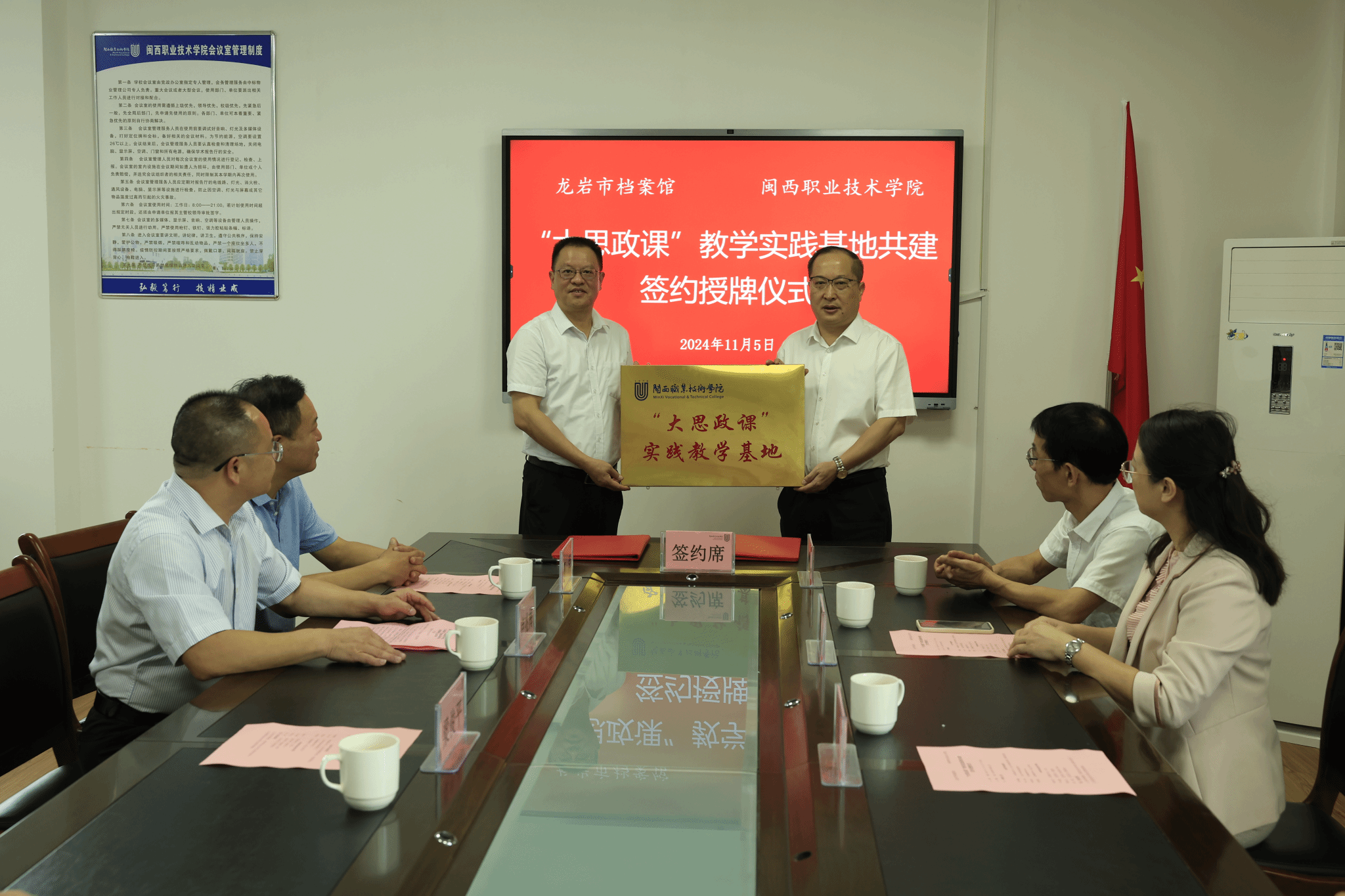 11月5日上午,我校与龙岩市档案馆举行“大思政课”教学实践基地共建签约授牌仪式。市委副秘书长、龙岩市档案局局长、档案馆馆长吴寿勤,龙岩市档案馆副馆长张一晓,我校党委副书记、校长梁俊平,党委委员、副校长卢兆梅以及龙岩市档案馆征集编研科、我校宣传部(统战部)、马克思主义学院等相关部门负责人参加了活动。