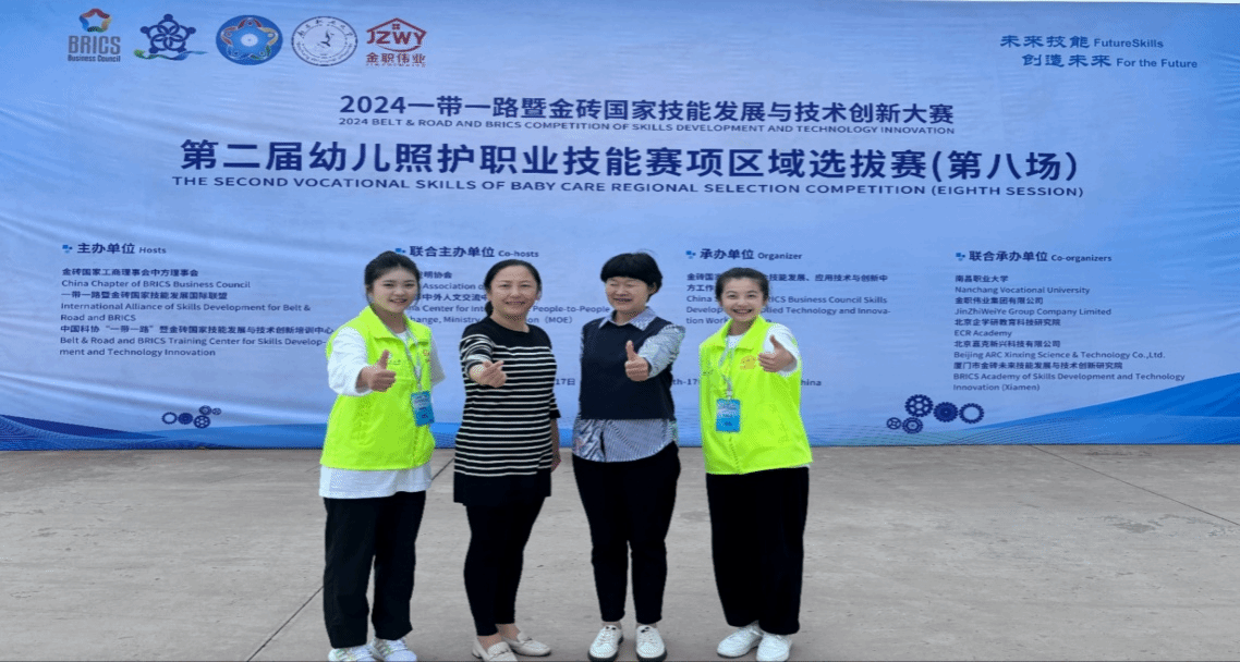 近日,2024年“一带一路”暨金砖国家技能发展与技术创新大赛第二届幼儿照护职业技能赛项(高校组)区域选拔赛在江西南昌职业大学落幕,由我校教育与艺术学院教师彭秀春、苑敏指导的22级早教专业林晓婷和24级五年专学前专业周雨昕同学组成的代表队,与来自江西、浙江、新疆、福建、江苏、上海33支高校代表队的激烈角逐,最终荣获区域选拔赛二等奖、福建代表队第一名的好成绩,并获得代表福建省参加该赛事的国赛资格。