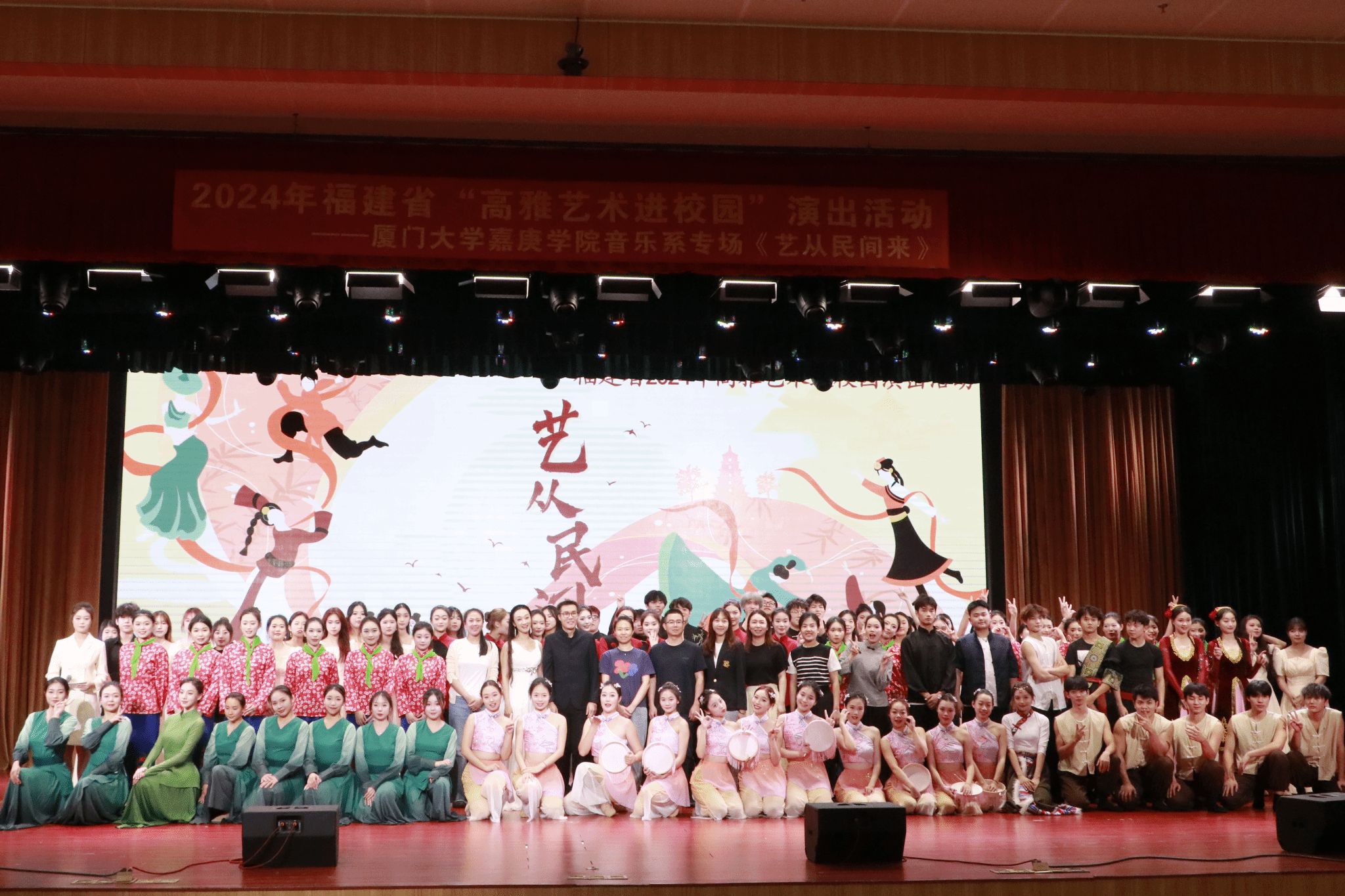 11月16日晚,2024年福建省“高雅艺术进校园”演出活动——厦门大学嘉庚学院音乐系专场《艺从民间来》在校本部大匠堂顺利举办。活动由省教育厅、省文旅厅主办,厦门大学嘉庚学院承办,我校团委协办。全校共700余名师生观看演出。