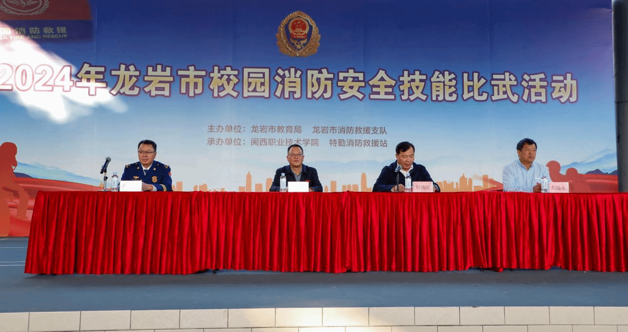开幕式上,刘路永副校长作了致辞;江德武副支队长围绕校园标准化管理达标创建、校园消防安全管理水平提升、校园应急处突及消防知识宣传等方面作了工作部署,并提出具体工作要求;刘炳河副局长宣布2024年龙岩市校园消防安全技能比武活动正式开始。