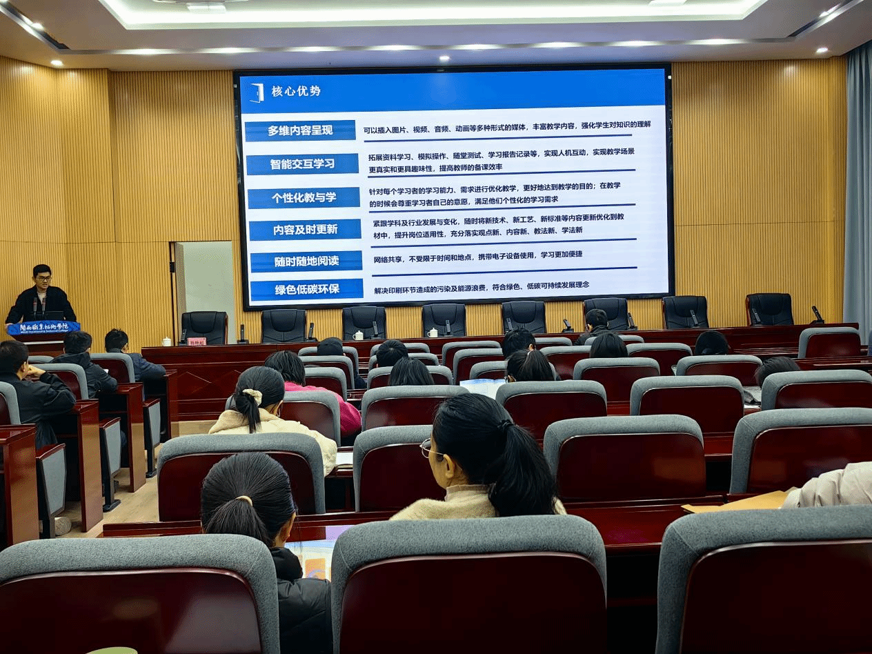 北京理工大学出版社数字教育分社杨艳超编辑为我校作了《新形态数字教材探索与实践》专题讲座,解读了新形态数字教材的政策、优势、特点,并对数字教材的解决方案、出版流程和建设实践作了系统的介绍,为我校加强新形态数字教材建设提供了具体可操作性的思路。