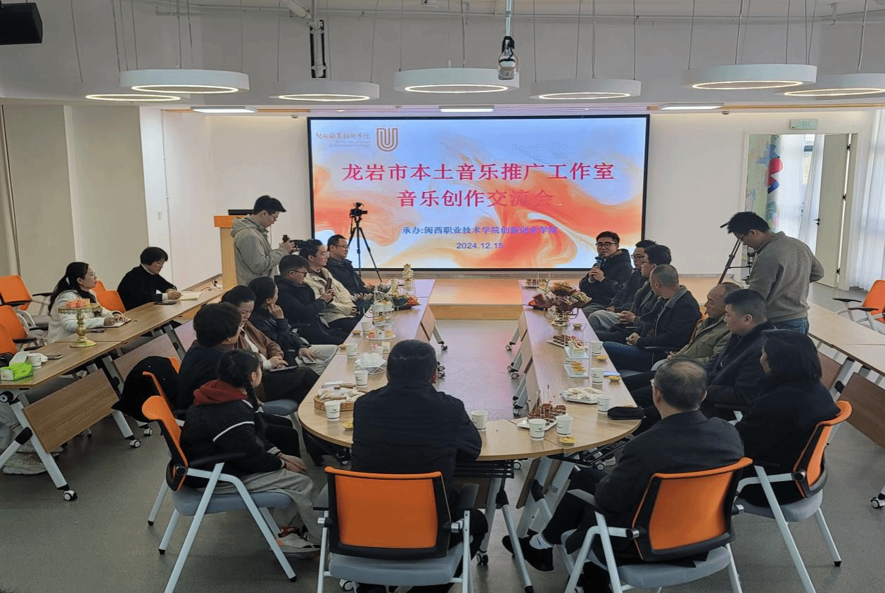 12月15日上午,龙岩本土音乐推广工作室及美育课程工作室在我校龙标大学生双创孵化基地正式揭牌成立。学校党委卢伟耀书记、龙岩市人大秘书长张亮春共同为工作室揭牌,原龙岩市人大常委会主任饶作勋同志出席了揭牌仪式。龙岩市汉剧传习中心、山歌传习中心、龙岩艺术学校嘉宾,龙岩市融媒体中心、新罗区融媒体中心及“猪团逛龙岩”等媒体齐聚万源楼三楼龙标双创孵化基地,见证这一时刻。嘉宾们在工作室感受了7.1.4全景声音乐的震撼视听效果,并参观了龙标大学生双创孵化基地。