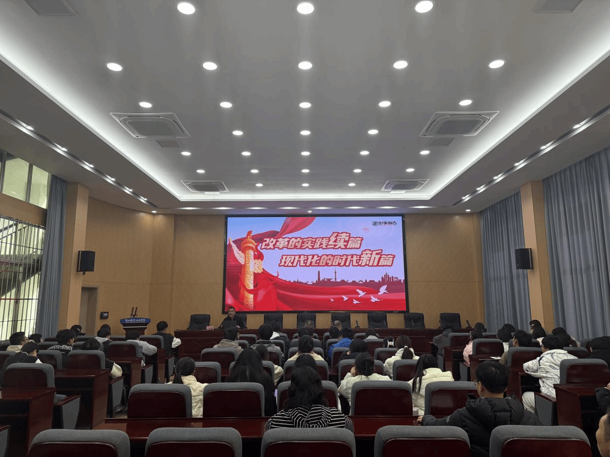 卢伟耀书记以“改革的实践续篇 现代化的时代新篇”为主题,从党的二十届三中全会《决定》的高频词出发,详细阐述了进一步全面深化改革的四个“迫切需要”;从经济领域、政治领域、文化领域、社会领域、生态文明领域、安全领域、党建领域阐述了全会提出的“七个聚焦”;围绕未来我们怎样才能继续成功,阐述了“六个坚持”是我们行之有效的成功密码。最后集体观看视频《奋进》,卢书记鼓励同学们不为任何风险所惧、不为任何干扰所惑,集中力量办好自己的事。