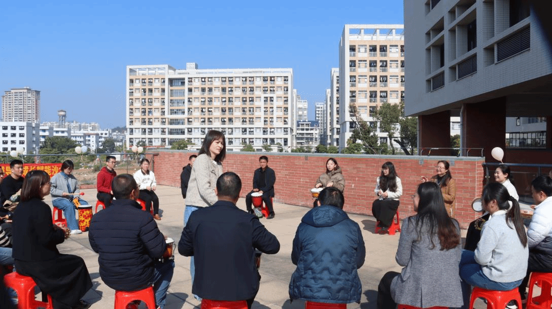当活动步入团体辅导的鼓圈环节,轻松氛围被推向高潮。伴随着《我们都是追梦人》的音乐声,大家敲击着手中五彩斑斓的手鼓,压力随之消散。这不仅是音乐共创,更是心灵共融,为辅导员们注入携手奋进、砥砺前行的精神力量。