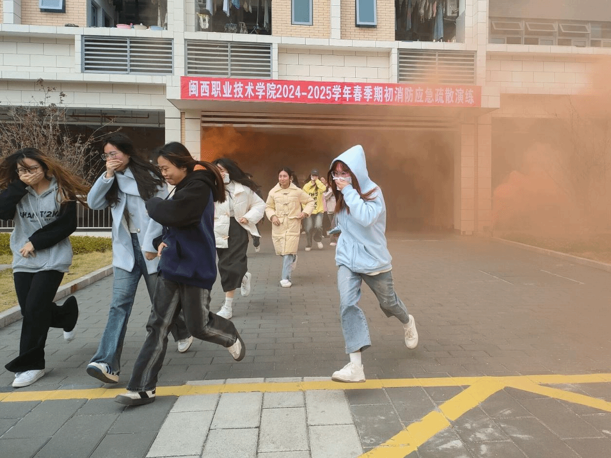 随着消防警报响起,消控室工作人员第一时间启动紧急疏散预案,按照分工要求迅速到位,通过楼内广播迅速通知在场师生、引导各楼层紧急疏散撤离。在工作人员指引下,同学们用湿巾捂住口鼻,靠右弯腰,沿着安全出口路线迅速撤离到室外安全区域。到达疏散地后,现场进行人员清点,整个过程快速、有序、安全。