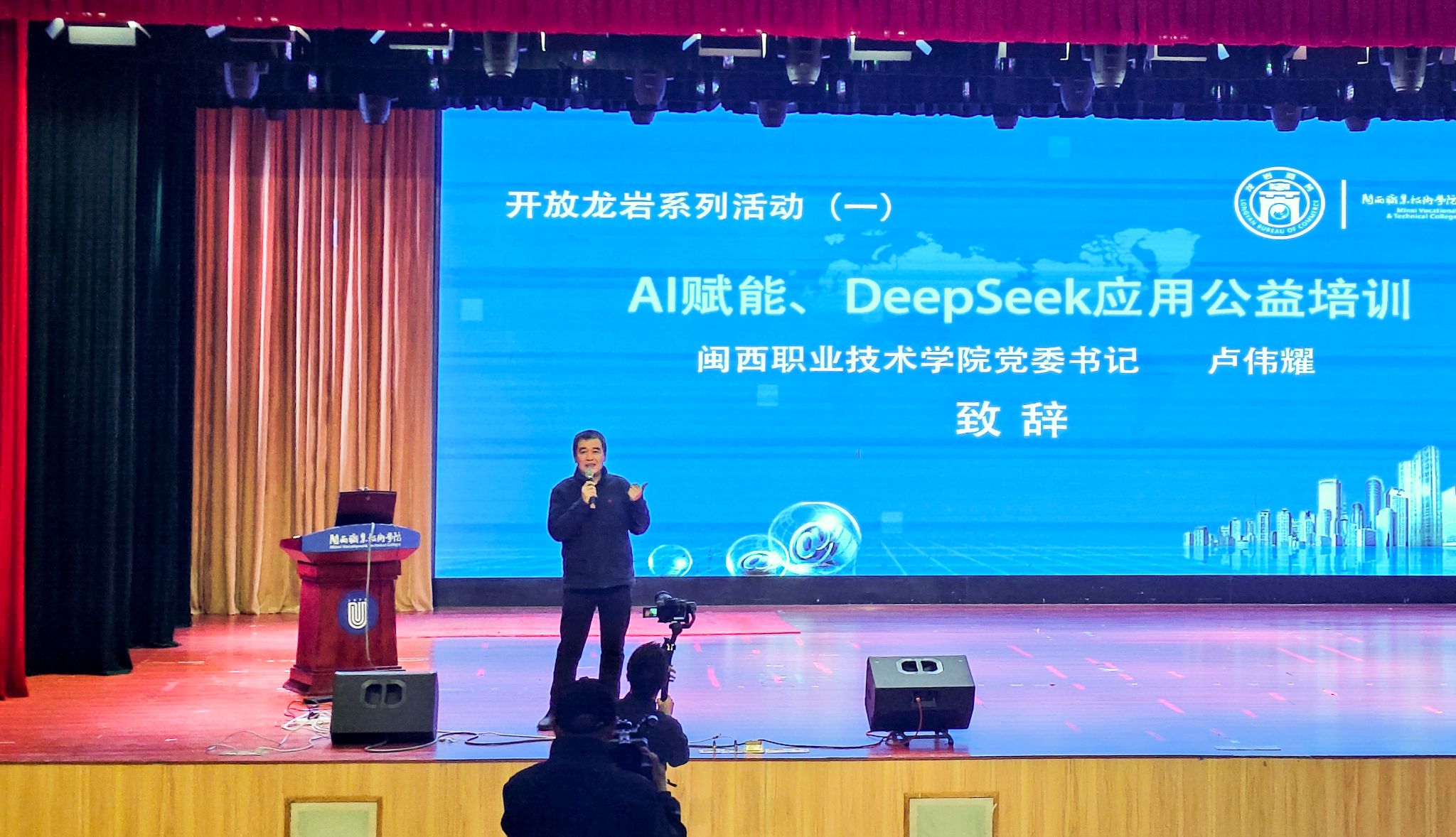 为响应市委市政府打好“对外开放牌”的号召,提升我市商贸行业、招商引资智能化运营效率,28日下午,由市商务局与我校共同主办的开放龙岩系列活动之一——AI赋能、DeepSeek应用公益培训在大匠堂举行。本次活动由文化与旅游学院承办,全市商务系统干部职工、商贸行业从业人员及我校部分教师等600多名同志参加培训。