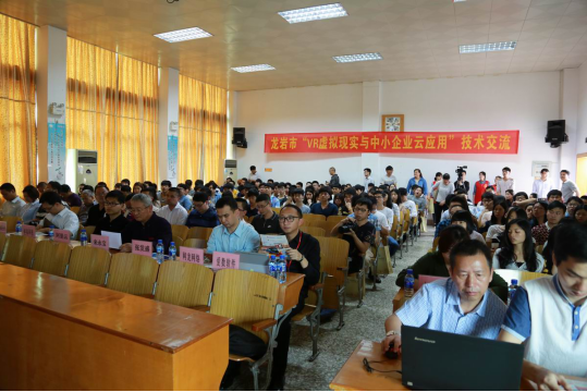 4月8日—9日,市“VR虚拟现实与中小企业云应用”技术交流活动在我院举行。院长来永宝出席交流会并致辞。市数字龙岩办公室主任张发盛主持交流会。市信息协会会员单位、专家、特邀代表及我院师生近300人参加会议。此次活动由市信息协会和我院共同主办,龙岩市创高科技有限公司承办,阿里云计算有限公司/杭州数梦工场科技有限公司、上海爱数软件有限公司协办,网龙网络公司提供支持。