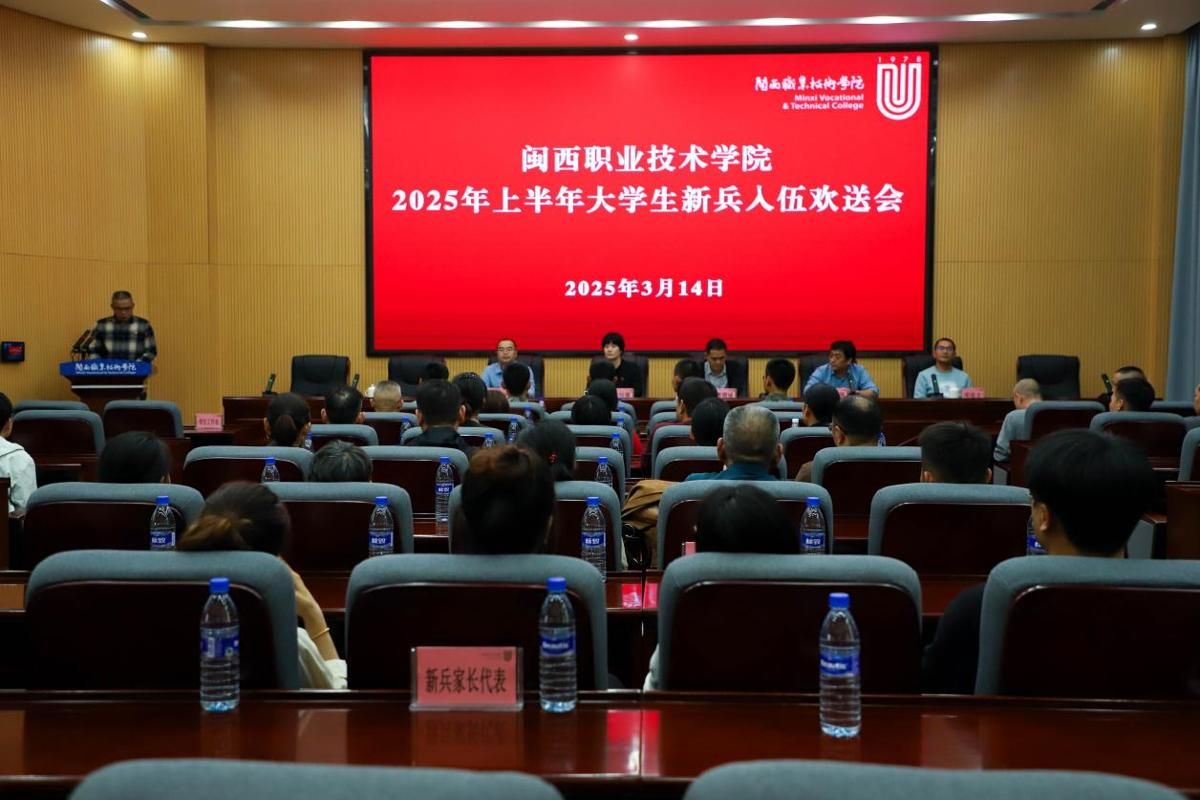 风华正茂抒壮志,参军报国踏征程。3月14日下午,我校在协成楼第一会议室召开2025年上半年大学生新兵入伍欢送会。副校长连玲娜,学生工作处、安全保卫处(武装部)负责人,智能制造学院、城乡建筑学院、财经商贸学院相关负责人及辅导员,武装部全体人员,5位大学生入伍新兵、新兵家长代表参加了欢送会。