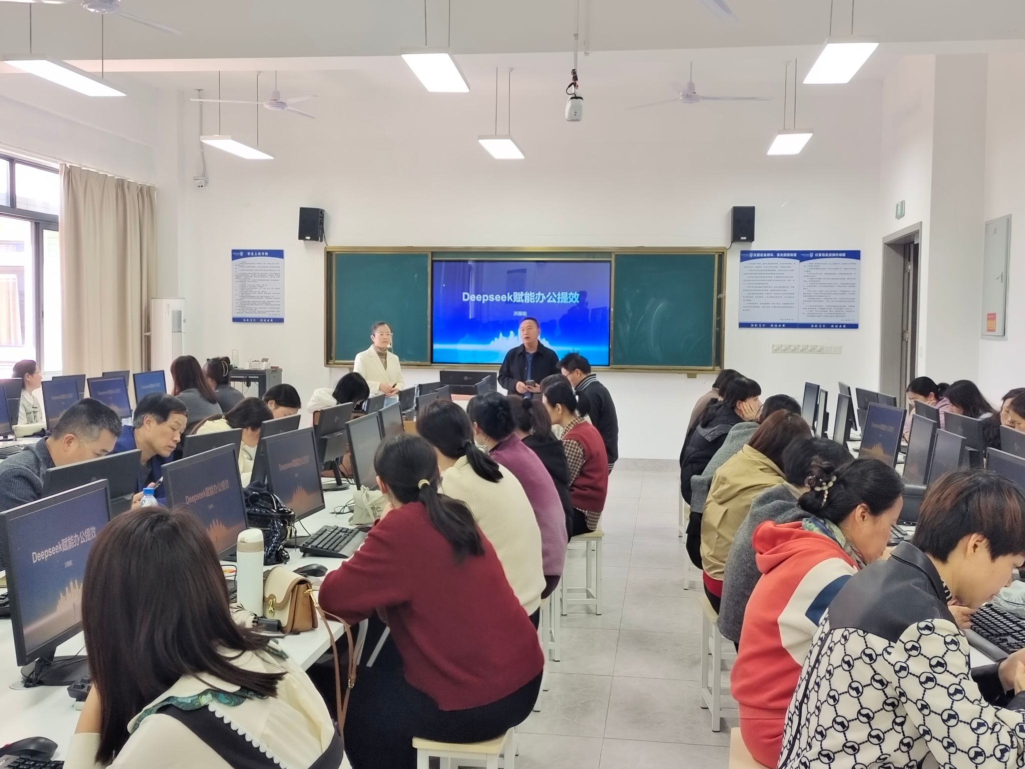 3月18日下午,我校党政办公室和信息工程学院在辛耕楼506教室共同主办“AI助力办公提效”培训,此次活动主要面向学校行政教辅人员,共70余人参加。