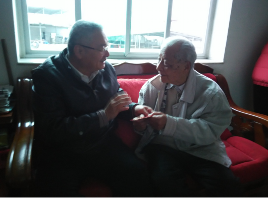 在退休老校长陈承德和郭启熹家中,来永宝院长感谢他们一直以来对学院各项工作的关心和支持,称赞他们为学院的发展作出的贡献,希望他们继续支持学院的建设和发展。