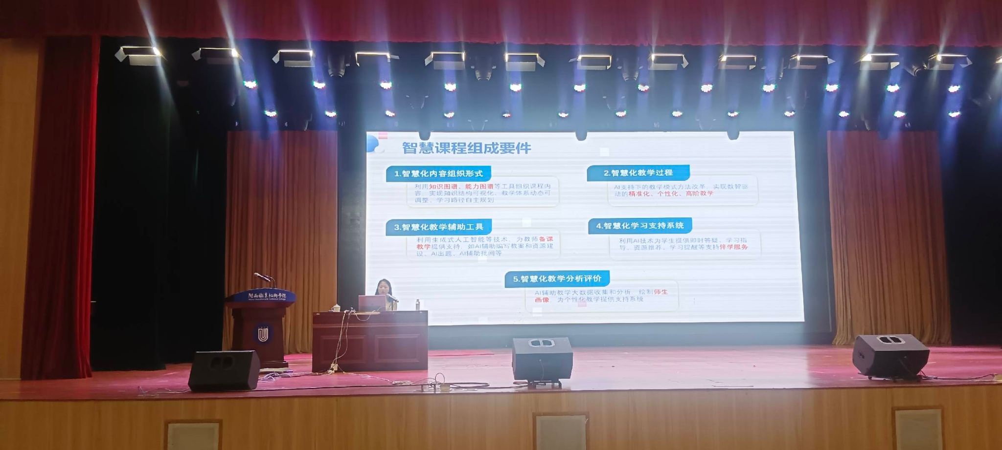 陈秀萍高级讲师介绍了人工智能技术在智慧课程建设中的创新应用,就掌握知识图谱、智能体和AI应用的核心概念与实践方法做了详细讲解,有效助力推动我校教育教学的数字化转型与高质量发展。