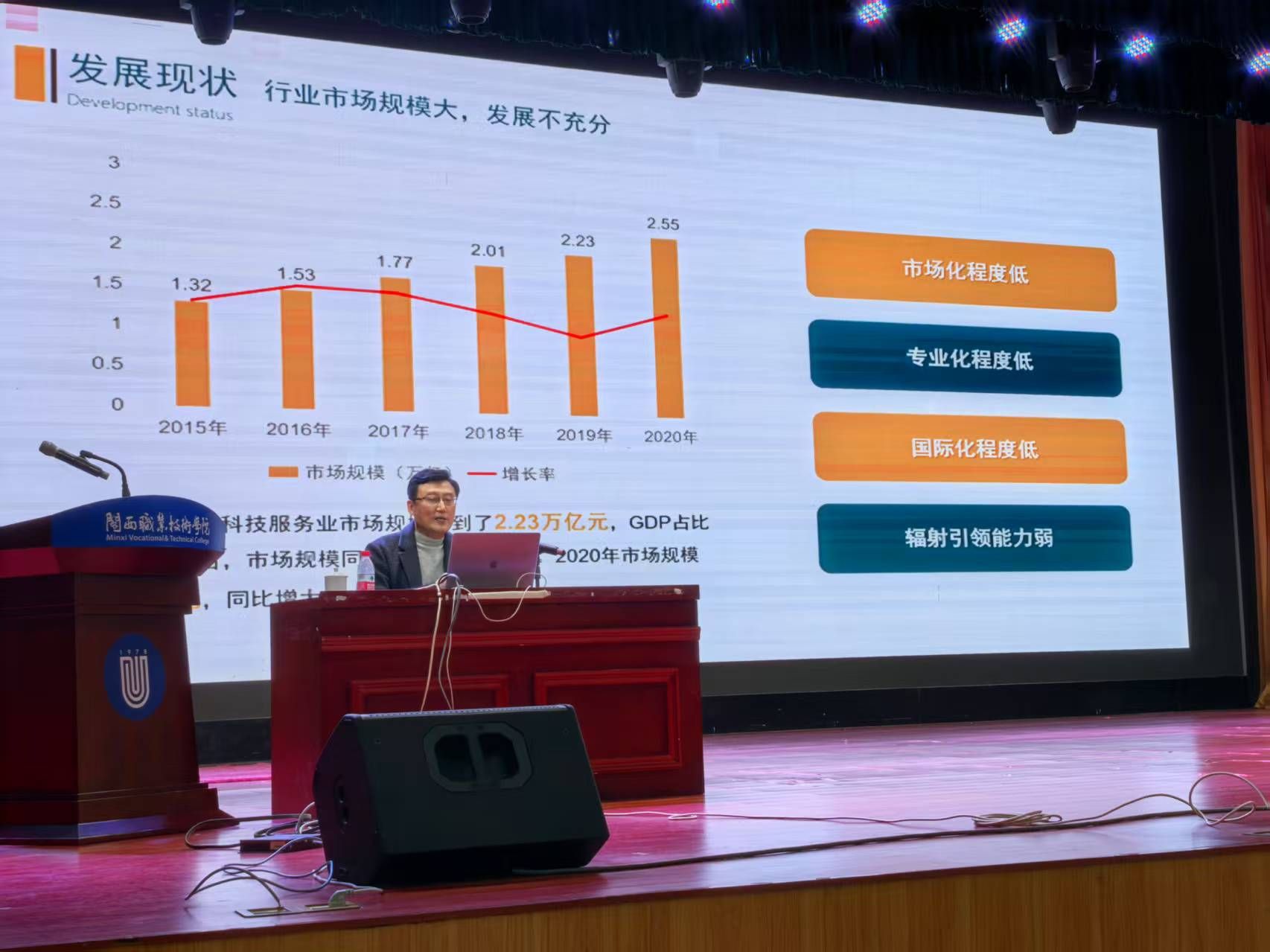 邱彬教授结合自己的工作案例,生动翔实地围绕科研项目申报、校企产学研合作讲解了如何开展高校科研与技术成果转移转化工作,强调高校教师在完成教学任务的同时不能放松科研工作,科研人员要形成市场意识,坚持以市场为导向、企业为主体、政策为引导的产研合作创新机制,深入企业生产一线,参与企业技术研发、推广和科技服务,提高专业实践能力和社会服务能力,促进创新链、产业链、市场需求有机衔接。最后,邱彬教授结合我校实际指出我校科研工作的薄弱点,提出建议。