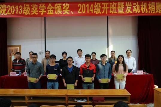 机械工程系就汽车学院13级汽车专班的办班情况作了介绍,并宣布汽车学院14级汽车专班开班;福建新龙马汽车股份有限公司人力资源部部长朱元莉宣读2013级汽车专班获“新龙马奖学金”同学名单,并与副院长吴新业为获奖学生颁发奖金。公司还向学院捐赠一台发动机。